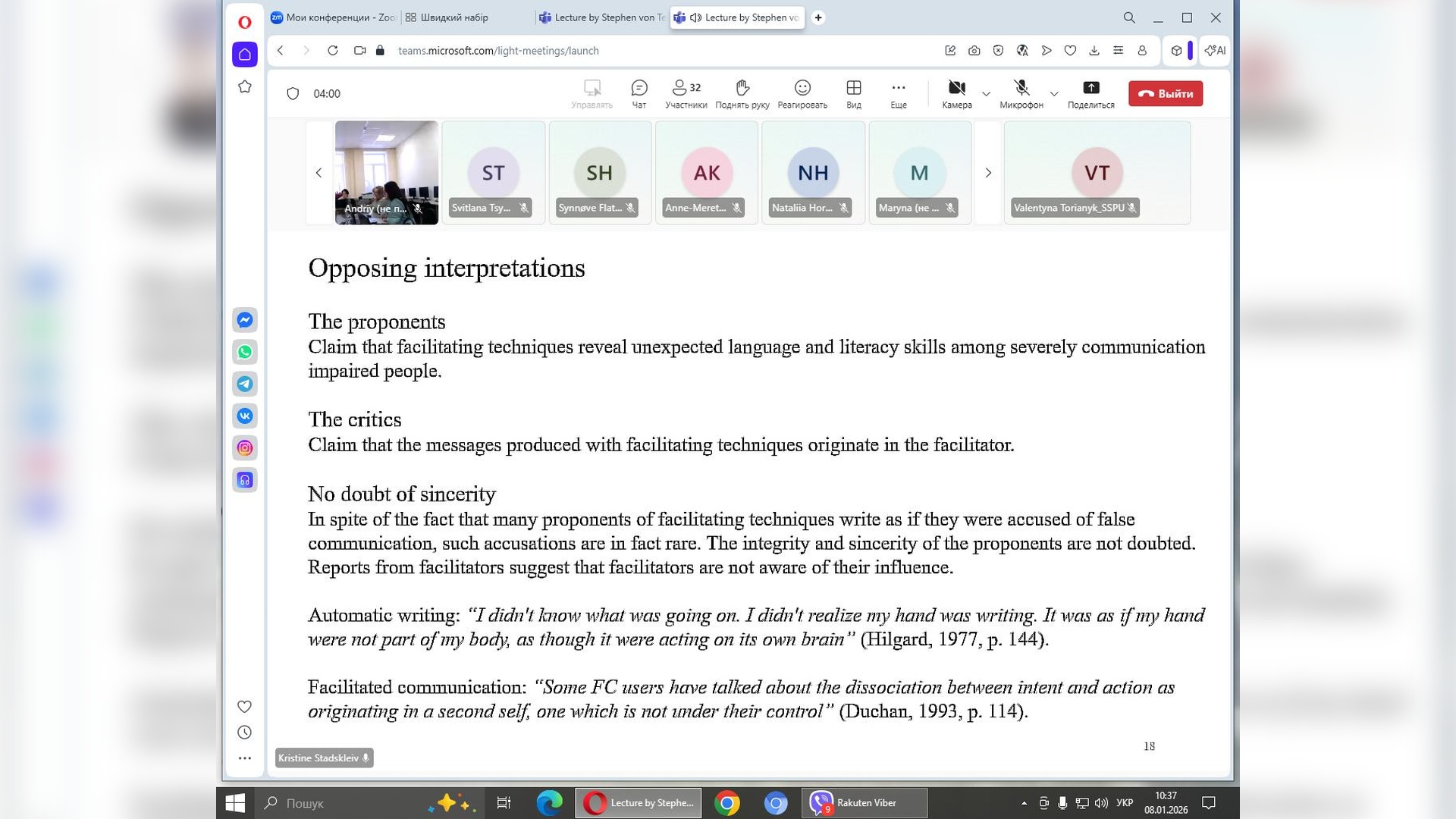 8 січня під час семінару, який провів Stephen von Tetzchner, було представлено низку кейсів, присвячених викликам у комунікації з користувачами АДК та ефективним стратегіям їх подолання в освітньому середовищі.