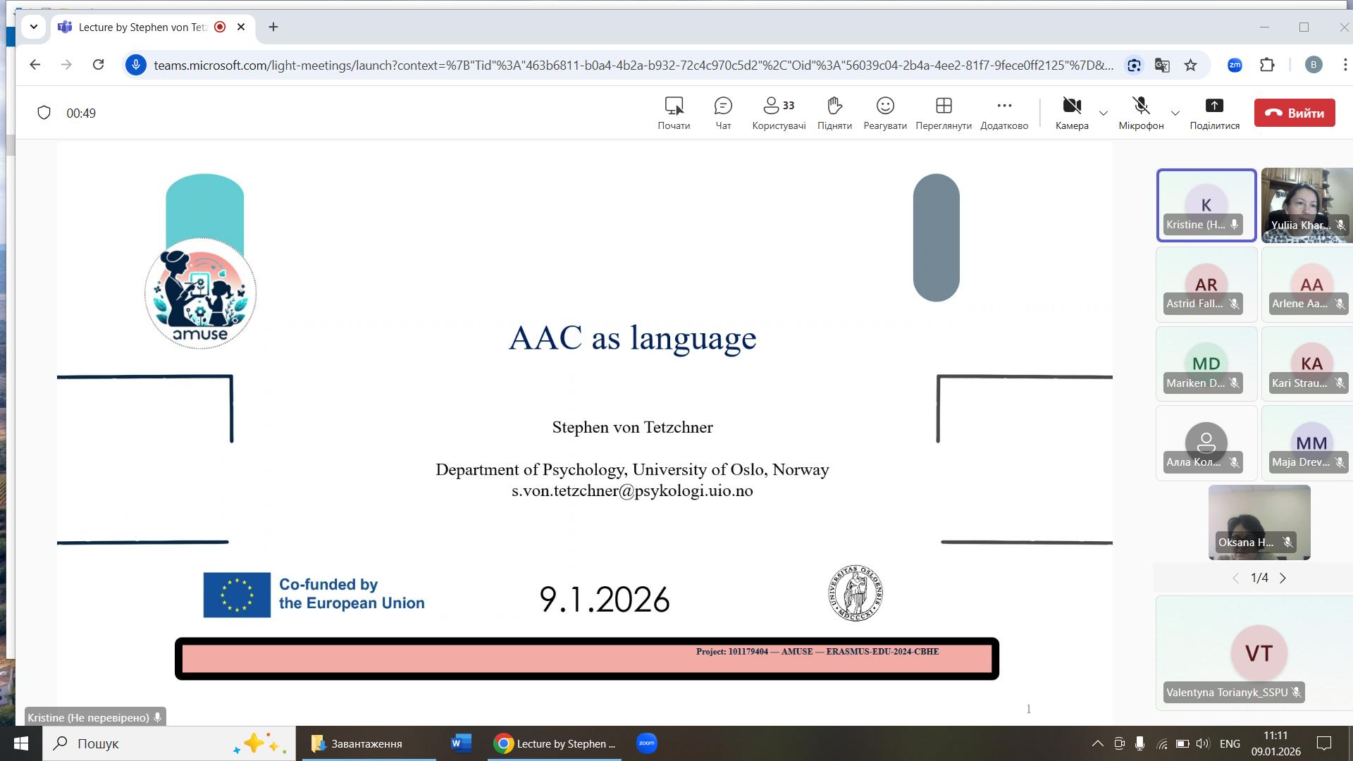 7, 8 і 9 січня 2026 року, під час навчального візиту до Університету Осло (Норвегія), частина семінарів проходила у змішаному форматі.