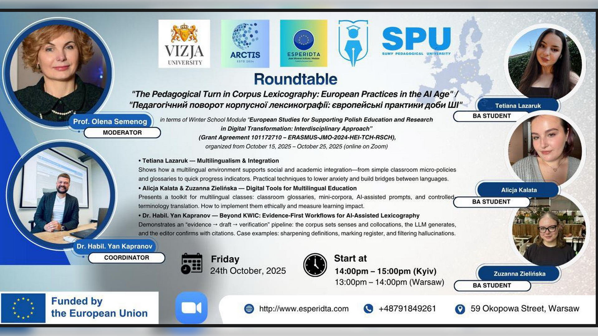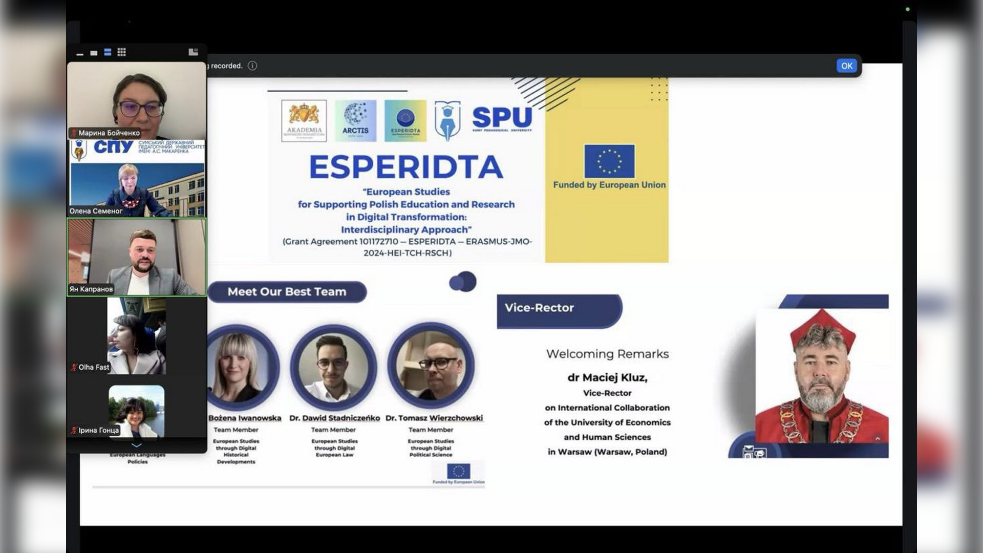 Упродовж 2024–2025 рр. Університет VIZJA у Варшаві (Польща) та Сумський державний педагогічний університет імені А. С. Макаренка активно співпрацюють у межах грантового проєкту “European Studies for Supporting Polish Education and Research in Digital Transformation: Interdisciplinary Approach” (ESPERIDTA) (Грантова угода 101172710 – ESPERIDTA – ERASMUS-JMO-2024-HEI-TCH-RSCH), що реалізується за підтримки Європейської Комісії.