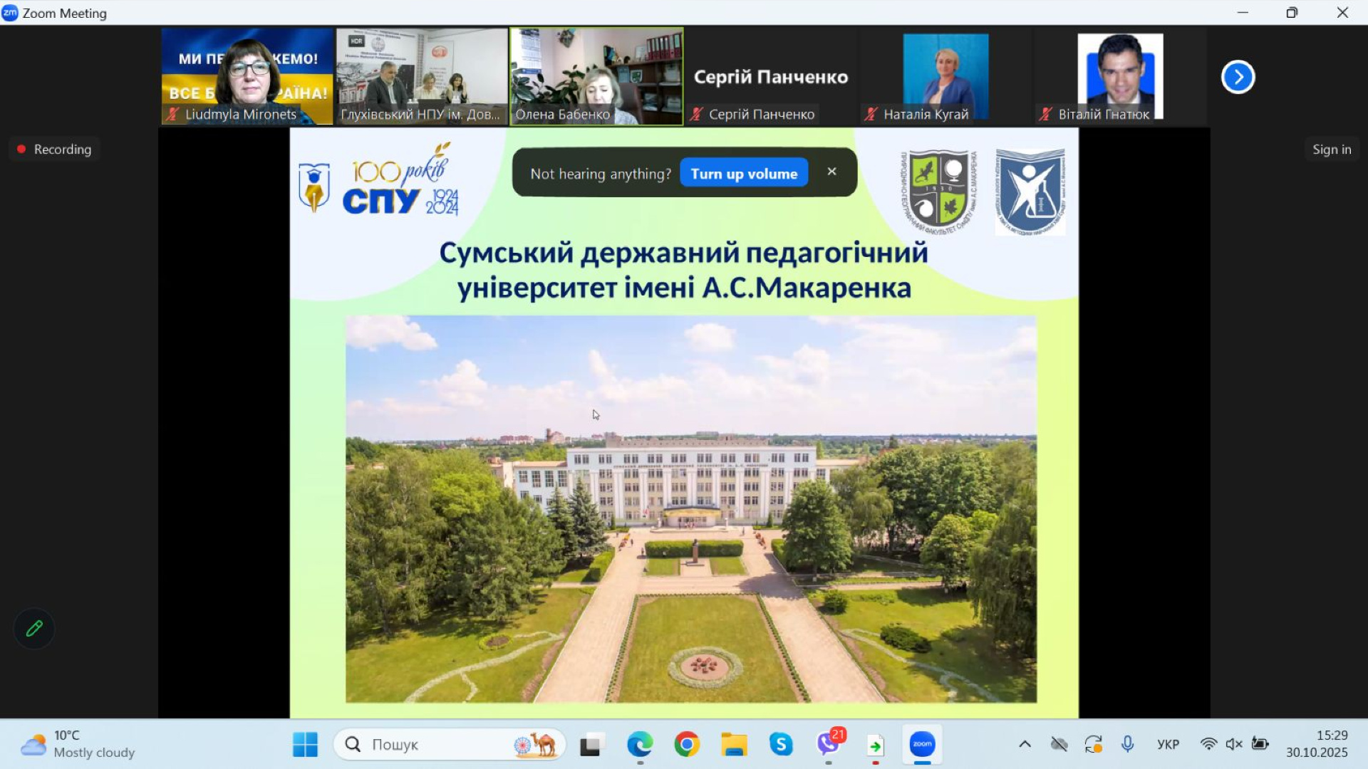 Упродовж 14-31 жовтня 2025 року д.пед.н., професор кафедри педагогіки, керівник Центру науково-освітнього партнерства і мережевої взаємодії СумДПУ Олена Семеног перебувала за програмою академічної мобільності у відділі змісту і технологій педагогічної освіти Інституту педагогічної освіти і освіти дорослих імені Івана Зязюна НАПН України.