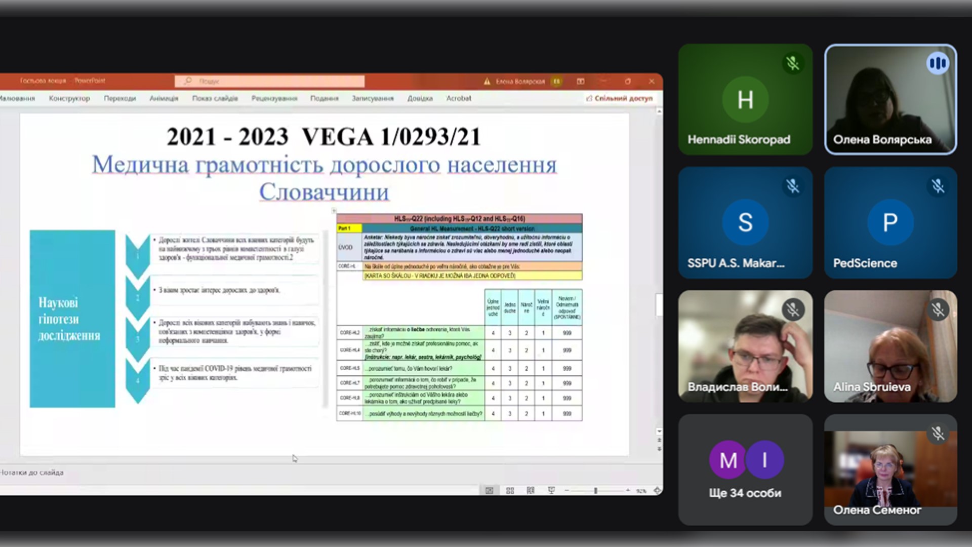 29 жовтня 2025 року в межах віртуальної академічної мобільності в СумДПУ докторка педагогічних наук, доцентка Олена Волярська (Університет імені Яна Коменського, Братислава, Словаччина) прочитала гостьову лекцію на тему «Методологія наукового дослідження: досвід європейських країн».