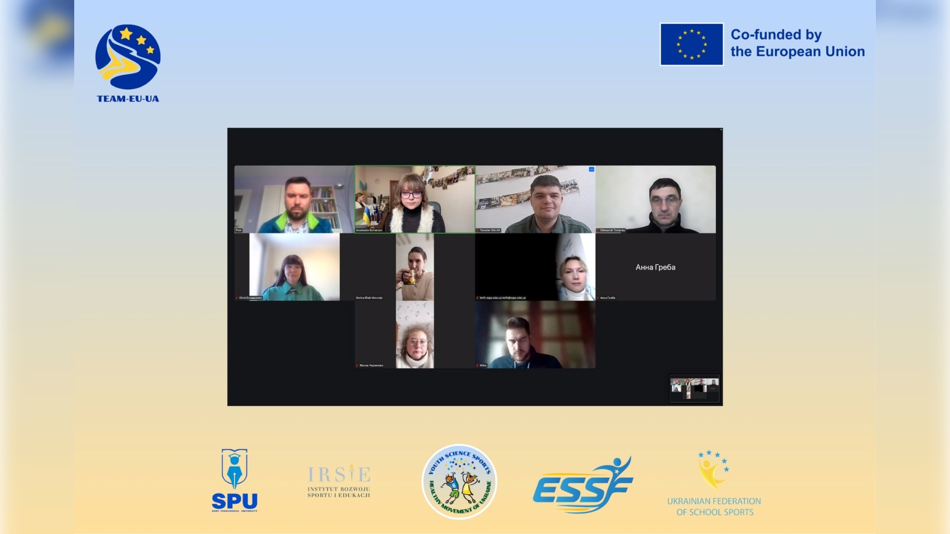 On February 12, 2026, an online working meeting was held between the partners and coordinator of the international project “Development of Team Spirit for the Implementation and Incorporation of EU Values in Ukraine (TEAM-EU-UA)”, which is co-funded by the European Union.