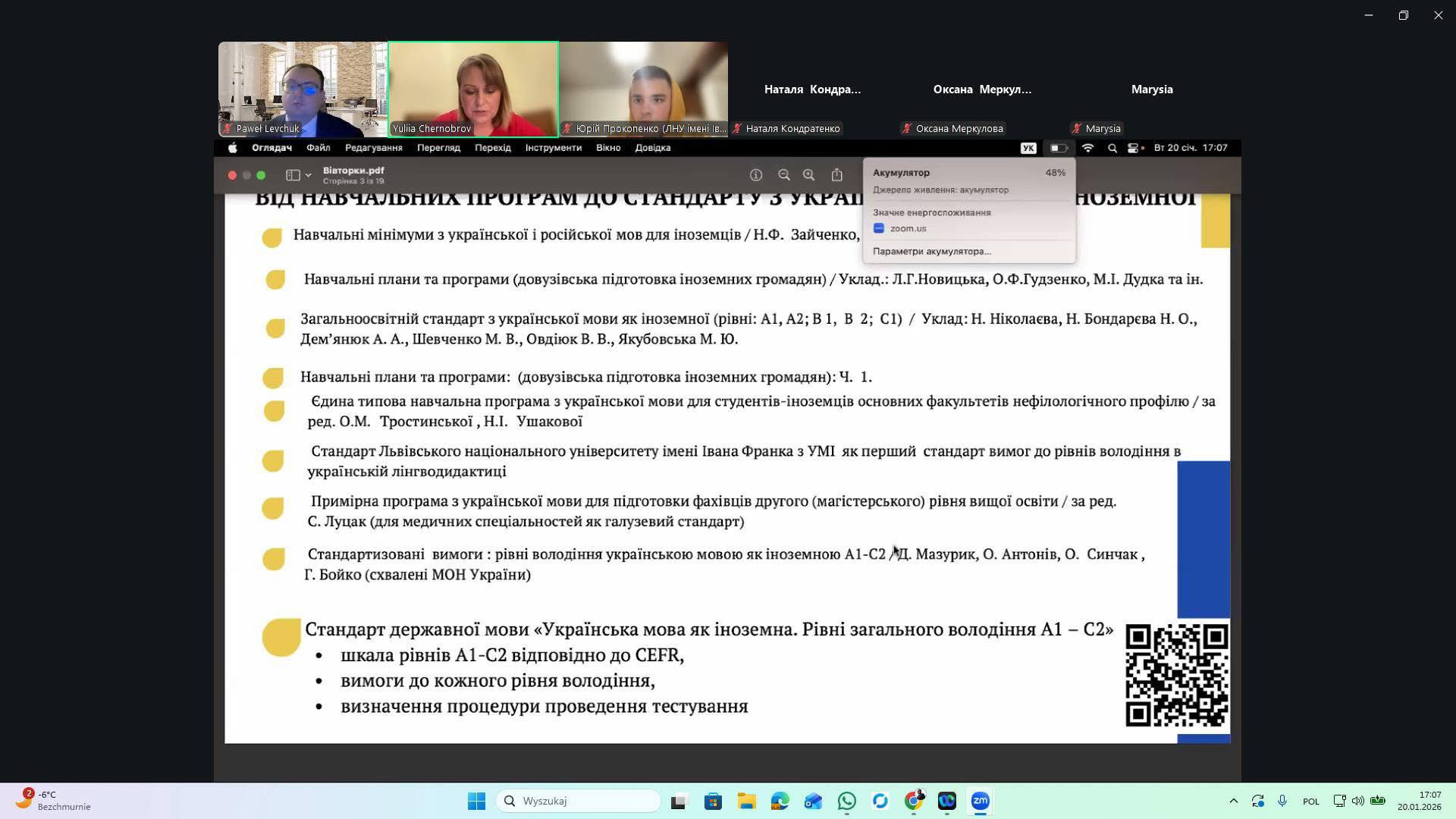20 січня 2026 року на запрошення мовознавця, славіста, доцента кафедри мовознавства Інституту славістики Польської академії наук (PAN) Polska Akademia Nauk (PAN) Павла Левчука Paweł Lewczuk викладачі, аспіранти кафедри педагогіки, кер. Центру науково-освітнього партнерства та мережевої взаємодії, проф. Олена Семеног долучилися до участі в семінарі серії «Українські вівторки» («Ukraińskie wtorki»), Захід відбувся на базі Інституту славістики Польської академії наук (PAN).
