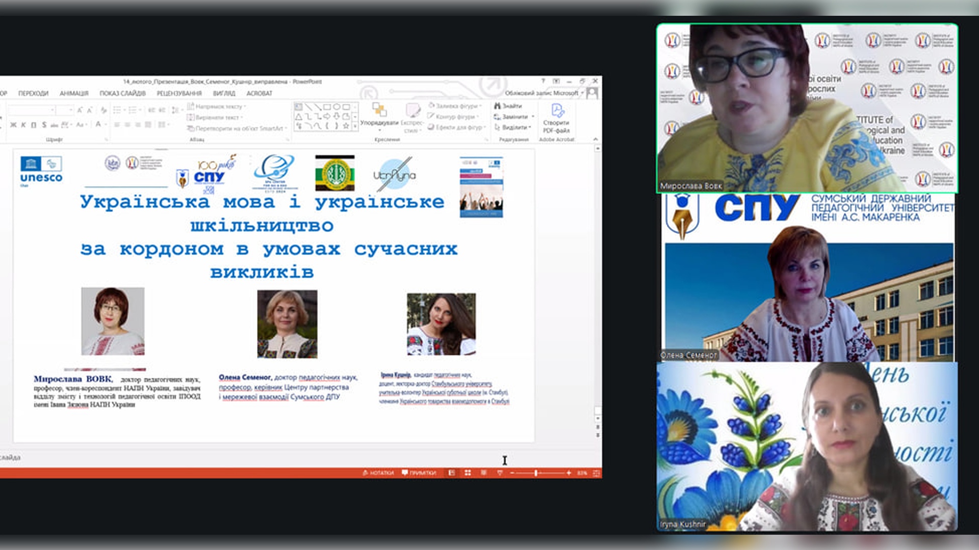 - Проф. Олена Семеног (СумДПУ), Мирослава Вовк (ІПООД) та Ірина Кушнір (Стамбульський університет), представили цінні практики українознавчих студій і українського шкільництва в умовах сучасних викликів.