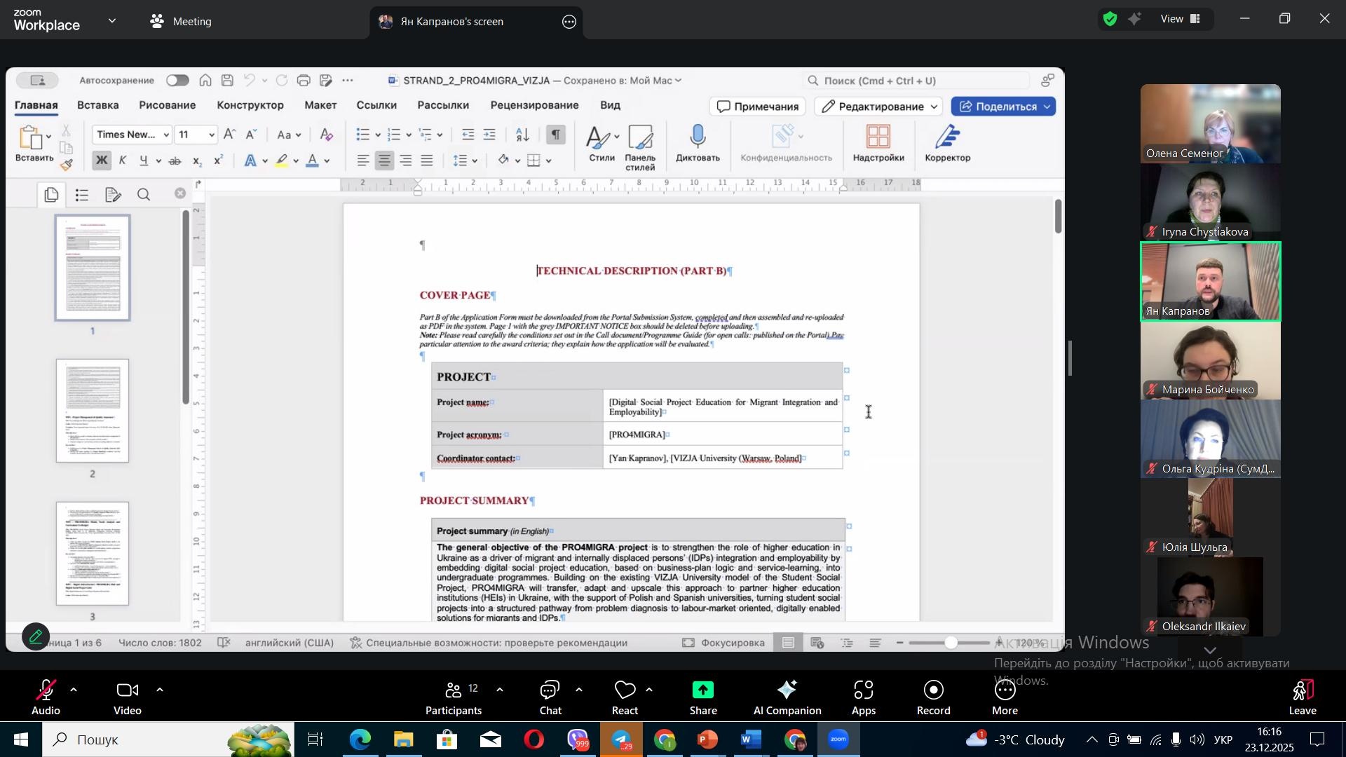 23 грудня 2025 року відбувся підсумковий круглий стіл (Making Europe Visible), присвячений рефлексії щодо спільного навчання. Основну доповідь представив д-р габ., проф. Ян КАПРАНОВ. Учасники заслухали відгуки зовнішніх експерток VISUAL-EU від СумДПУ: проректорки з наукової роботи, д. екон. н., проф. Ольги КУДРІНОЇ та д.пед.н., проф. Олени СЕМЕНОГ з конструктивним огляд активностей Зимової школи VISUAL-EU.