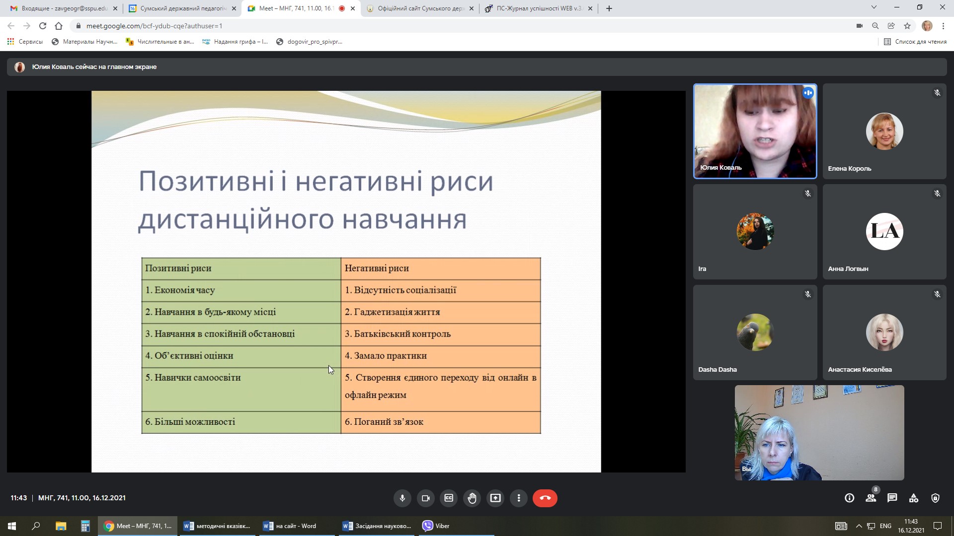 16 грудня 2021 року на кафедрі загальної та регіональної географії у рамках діяльності Науково-дослідної лабораторії регіональних природничо- та суспільно-географічних досліджень та ресурсного центру розвитку природничої освіти Сумського державного педагогічного університету імені А.С. Макаренка відбулося засідання наукової проблемної групи, на якому студенти 741 групи спеціальності 014 Середня освіта (Географія) презентували свої науково-дослідні доробки.
