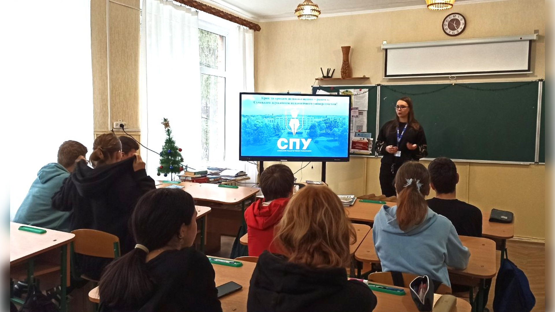 Під час зустрічей фахівець Центру презентувала основні спеціальності університету, розповіла про сучасні підходи до підготовки педагогічних фахівців, міжнародні програми, академічну мобільність та умови практичної підготовки студентів. Окрему увагу було приділено питанням вступної кампанії, переліку необхідних сертифікатів НМТ, можливостям пільгового вступу та особливостям подачі електронних заяв. Представниця університету підкреслила відкритість СумДПУ до співпраці, а також готовність надавати консультативний супровід на всіх етапах вступної кампанії.