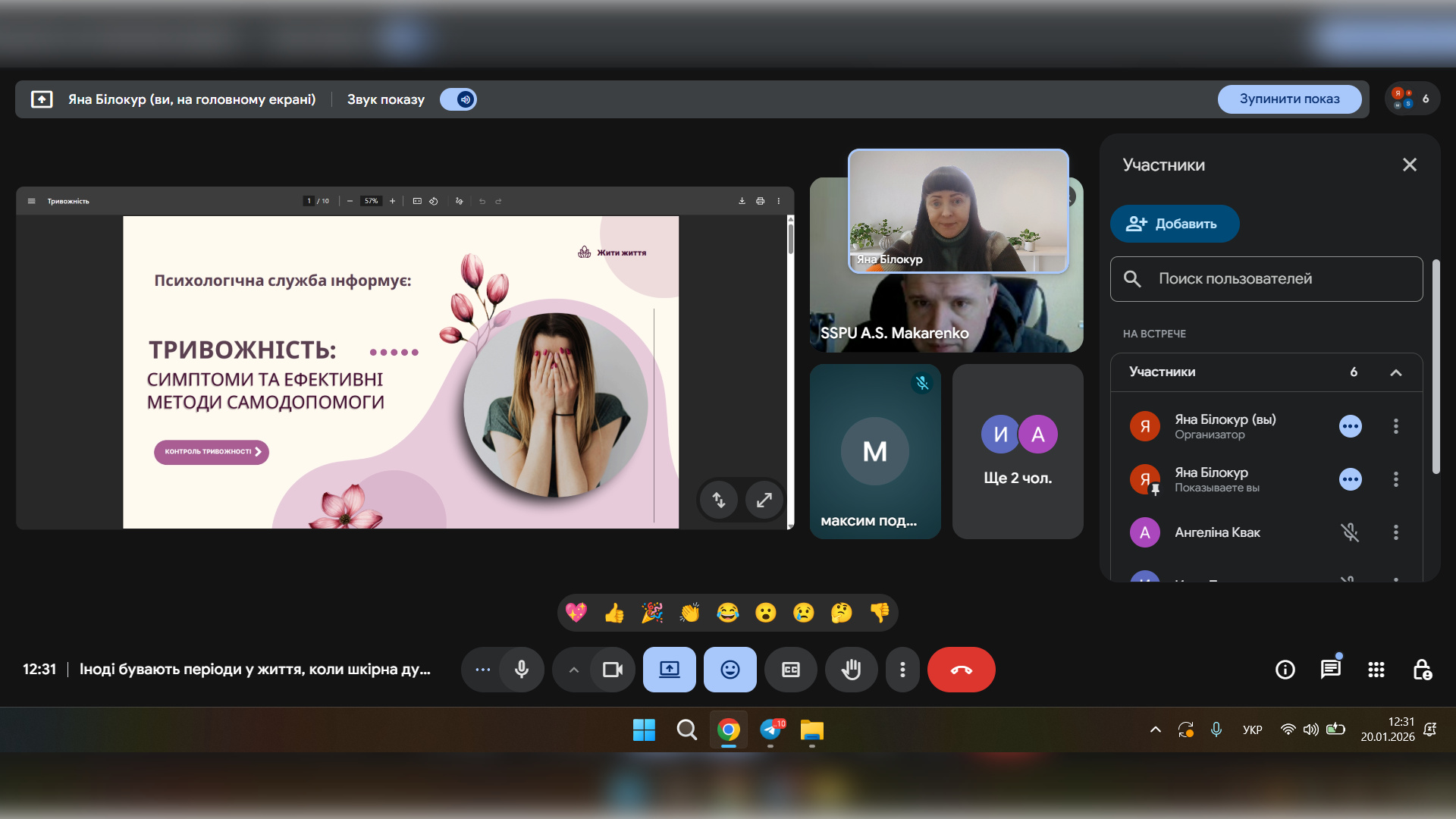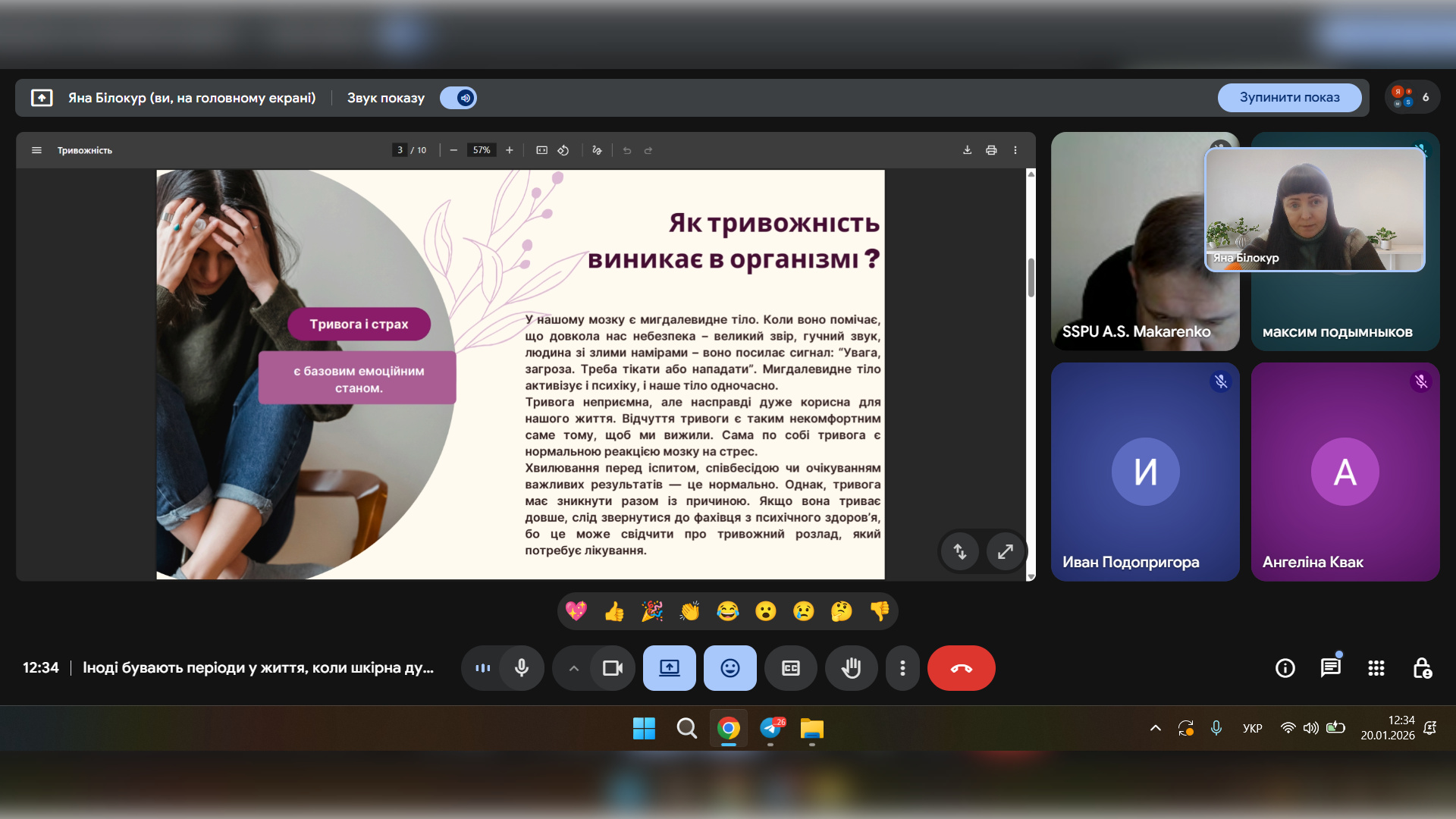 Як розпізнати тривогу та спробувати з нею впоратися, можна було дізнатися на зустрічі з психологічною службою 20 січня «Тривожність: симптоми та ефективні методи самодопомоги».