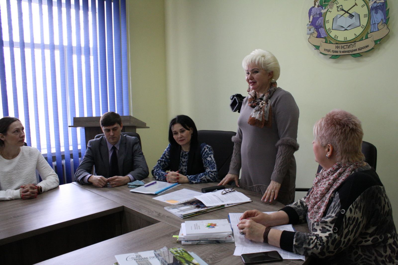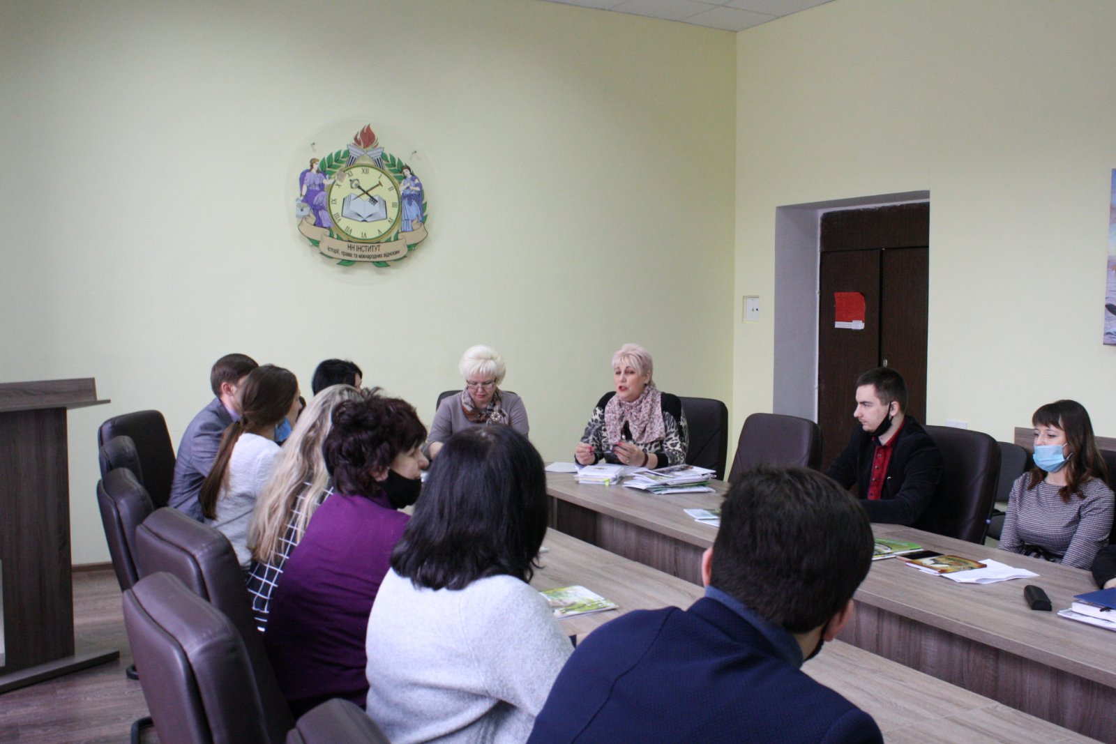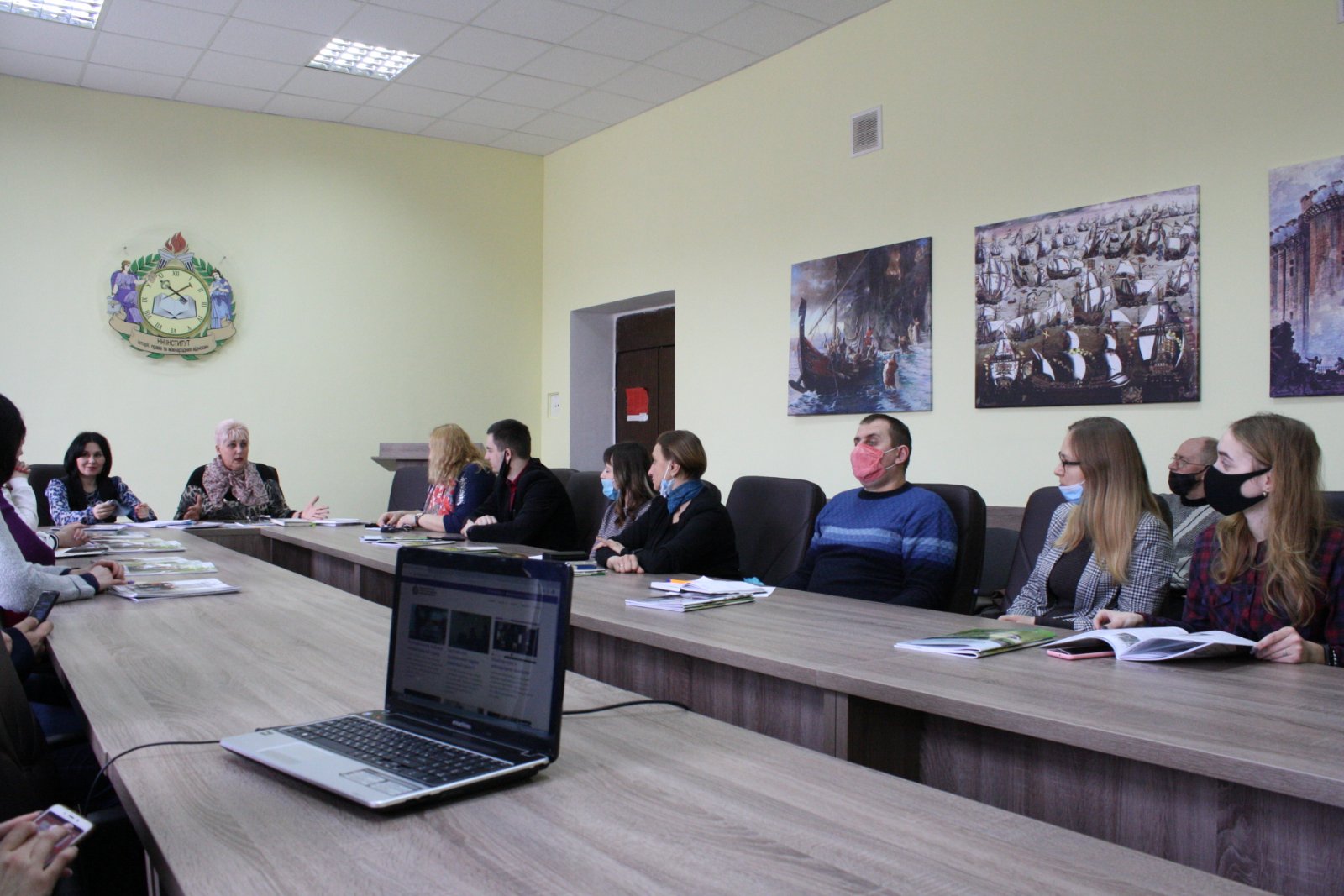 В.о. завідувачки кафедри всесвітньої історії, міжнародних відносин та методики навчання історичних дисциплін, доцентка С.І. Моцак ознайомила з можливостями ресурсного центру професійного розвитку вчителя історії та громадянської освіти Навчально-наукового інституту історії, права та міжнародних відносин СумДПУ імені А.С. Макаренка для професійного росту викладачів історії та суспільствознавчих дисциплін. Необхідність появи такого центру обумовлена потребою налагодження більш комунікативної взаємодії викладачів кафедр історії України та всесвітньої історії, міжнародних відносин та методики навчання історичних дисциплін із закладами загальної середньої освіти та закладами професійно-технічної освіти Сумщини та спорідненими кафедрами педагогічних університетів України.