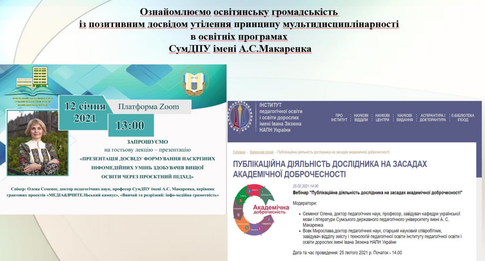 Науково-дослідною лабораторією проблем інклюзивної освіти (НДЛ ПІО) кафедри спеціальної та інклюзивної освіти Навчально-наукового інституту педагогіки і психології СумДПУ імені А.С. Макаренка (завідувач лабораторії професор Бондаренко Ю.А.) ініційовано міжнародну зустріч адміністрації університету з керівником академічної спілки Modern Education & Research Institute (MERI) Катериною Царанок. Зустріч проведено в онлайн форматі 17 березня 2021 року.