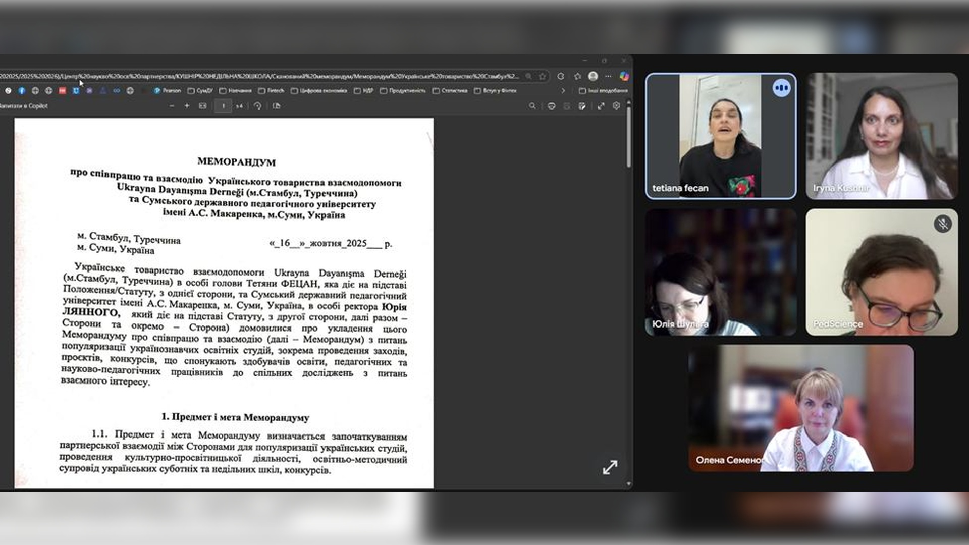 16 жовтня 2025 року підписано Меморандум про співпрацю та взаємодію між Українським товариством взаємодопомоги в Стамбулі (Ukrayna Dayanışma Derneği, м.Стамбул, Туреччина) та Сумським державним педагогічним університетом імені А. С. Макаренка (м. Суми, Україна).