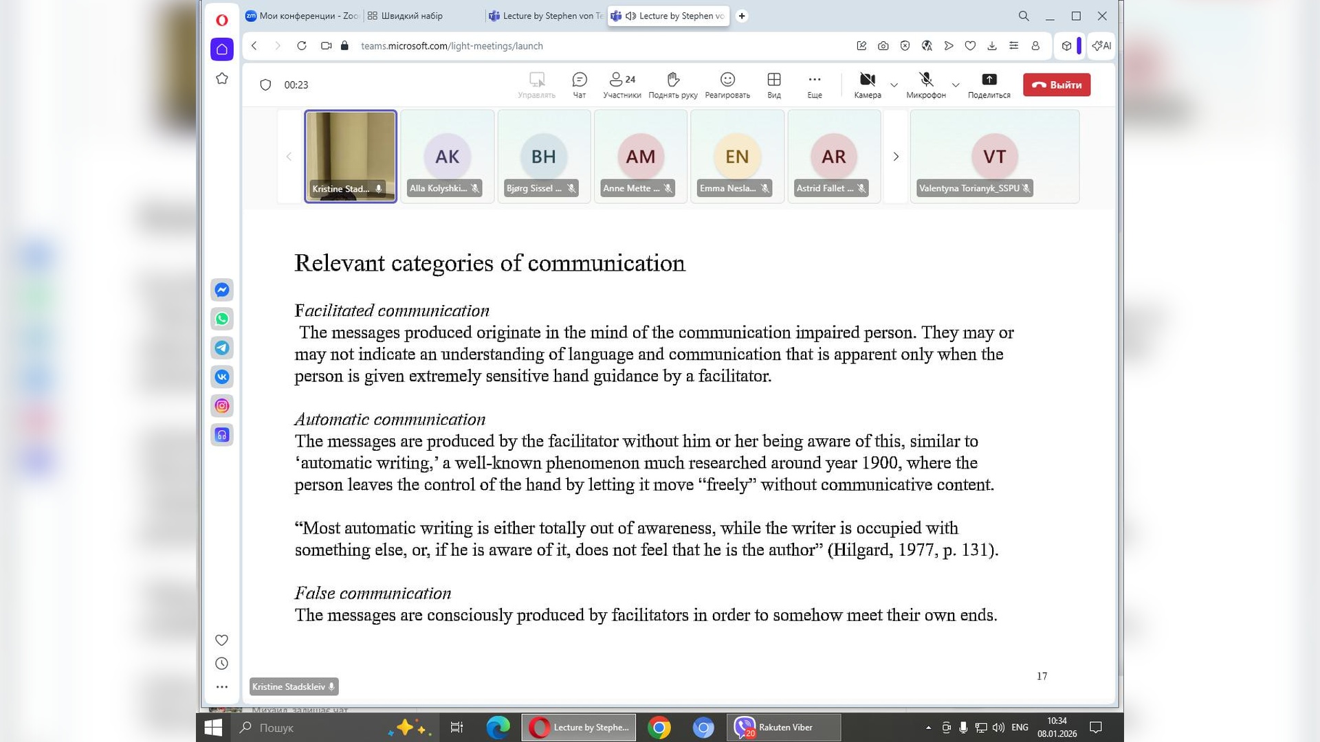 8 січня під час семінару, який провів Stephen von Tetzchner, було представлено низку кейсів, присвячених викликам у комунікації з користувачами АДК та ефективним стратегіям їх подолання в освітньому середовищі.