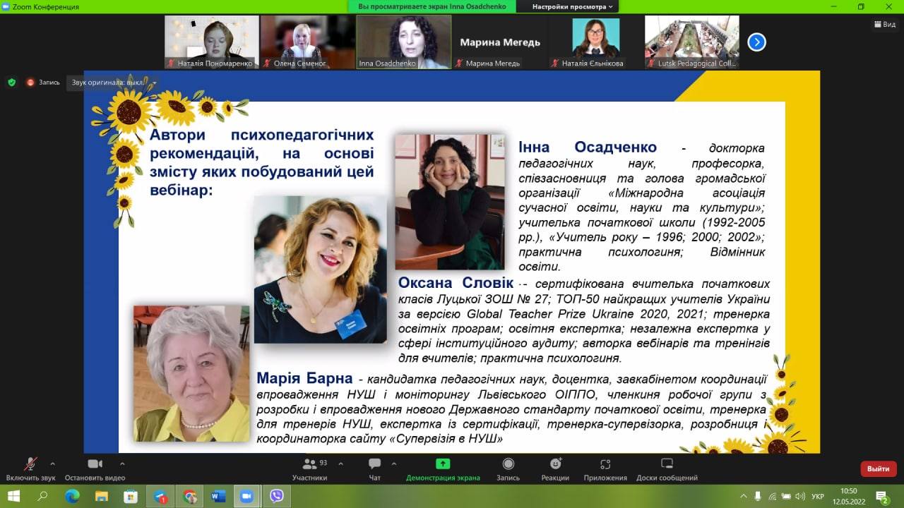 Модерували: Олена Семеног, завідувач кафедри української мови і літератури СумДПУ імені А.С. Макаренка; Ольга Фаст, проректор з науково-педагогічної роботи КЗВО «Луцький педагогічний коледж» Волинської обласної ради; Мирослава Вовк, завідувач відділу змісту і технологій педагогічної освіти Інституту педагогічної освіти і освіти дорослих імені Івана Зязюна НАПН України, член Кафедри ЮНЕСКО «Неперервна професійна освіта ХХІ століття».
