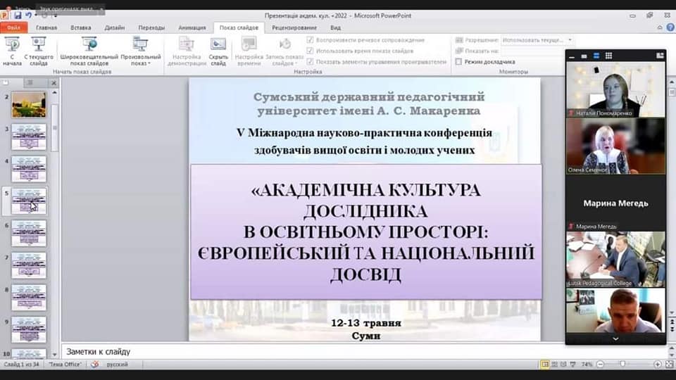 12 травня 2022 року в Сумському державному педагогічному університеті імені А.С. Макаренка розпочала роботу V Міжнародна науково-практична конференція «АКАДЕМІЧНА КУЛЬТУРА ДОСЛІДНИКА В ОСВІТНЬОМУ ПРОСТОРІ: ЄВРОПЕЙСЬКИЙ ТА НАЦІОНАЛЬНИЙ ДОСВІД».