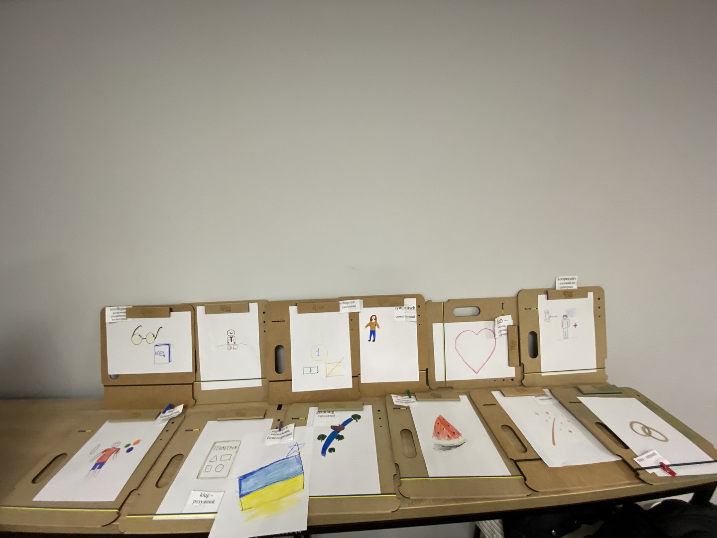 У другій частині заходу викладачі кафедри запропонували школярам разом пограти у творчу гру для кмітливих «Guck hin, guck her» «Поглянь сюди, поглянь туди». Учням було запропоновано обрати слова, які за змістом інтерпретують поняття людяності, добра, допомоги. Свої асоціації школярі малювали і пояснювали іноземними мовами.