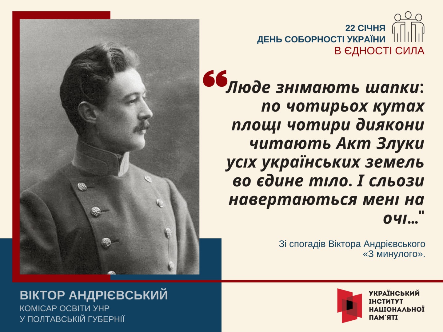 Акт Злуки увінчав соборницькі прагнення українців обох частин України – Наддніпрянщини та Наддністрянщини – щонайменше з середини XIX століття. Це була основоположна подія для українського державотворення.