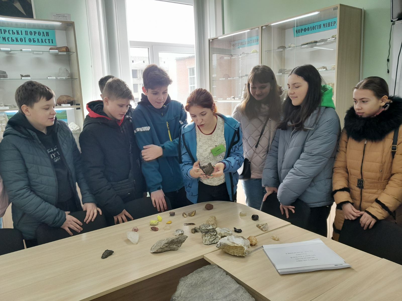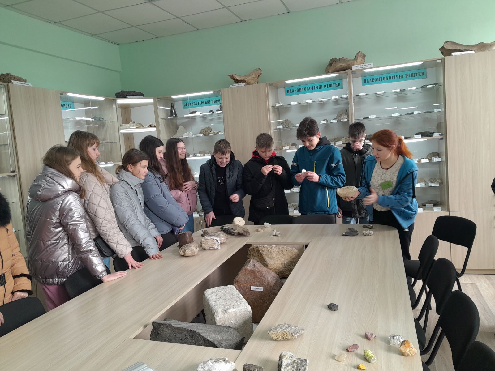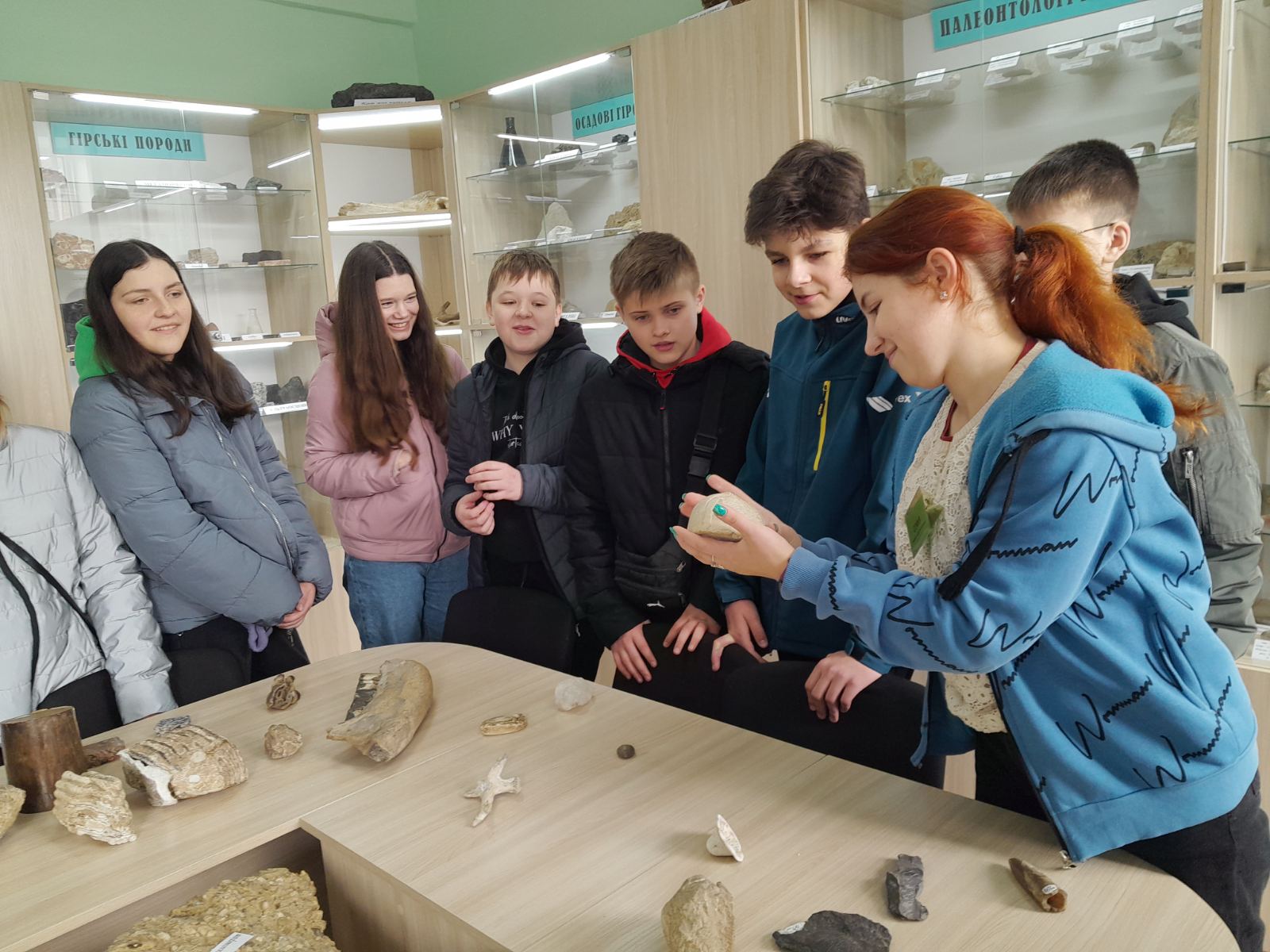 Під час екскурсії учні дізналися про фізичні властивості мінералів та самі спробували перевірити мінерали на смак, блиск, магність, запах та колір; порівнювали скам'янілі рештки зубів носорога шерстистого та мамонта, розглядали колекцію скам'янілих морських їжаків та кишковопорожнинних і губок