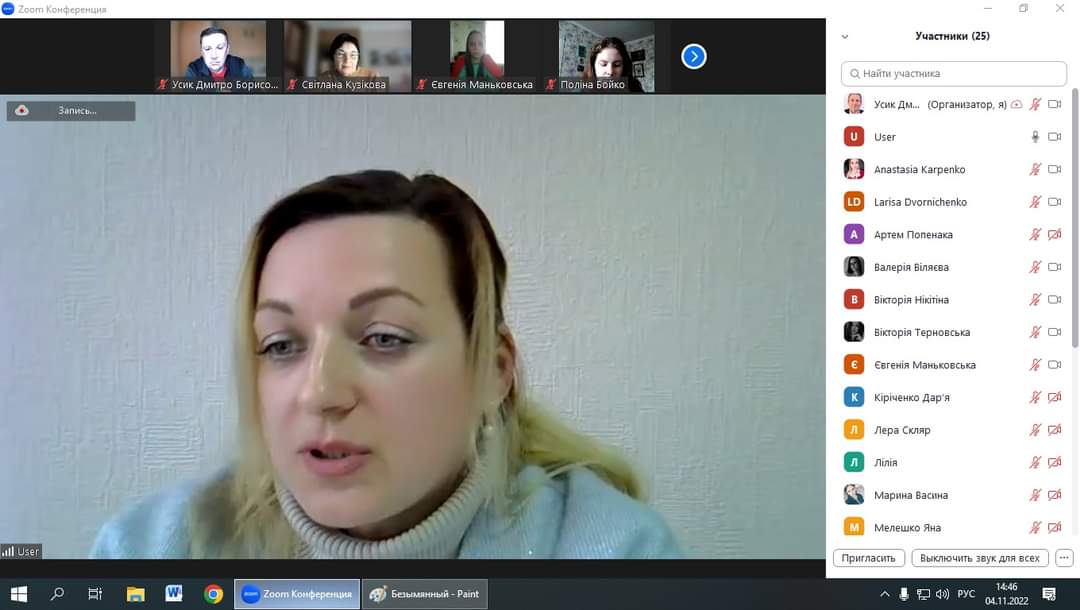 Під час лекції Світлана Леонідівна ознайомила з історією створення центру, з основними видами роботи, розповіла про види експертиз, виокремила особливості роботи судового експерта в сучасних умовах, надала алгоритм роботи судового експерта та більш детально представила сучасну комплексну психолого-лінгвістичну експертизу, яка з моменту початку війни стає найбільш актуальною.