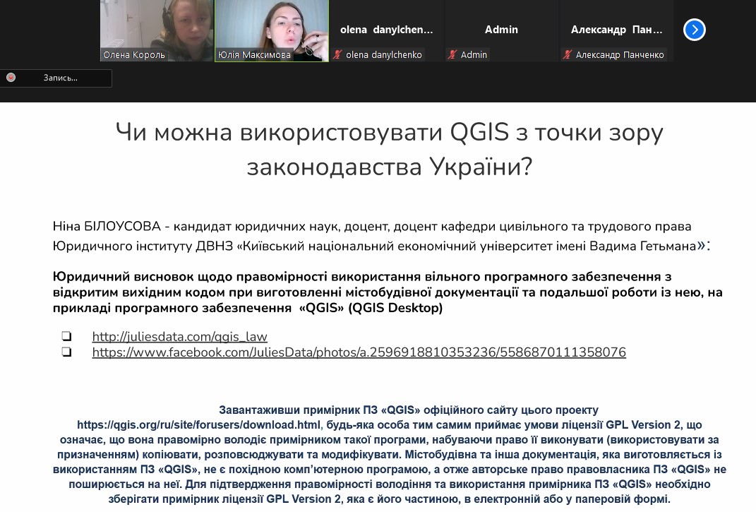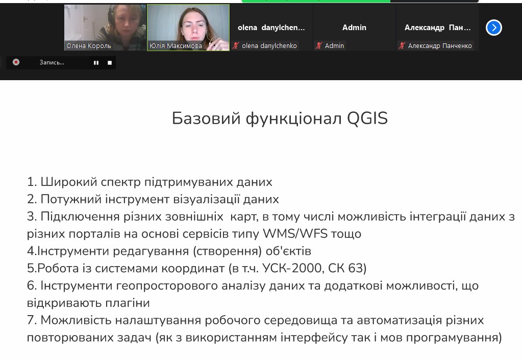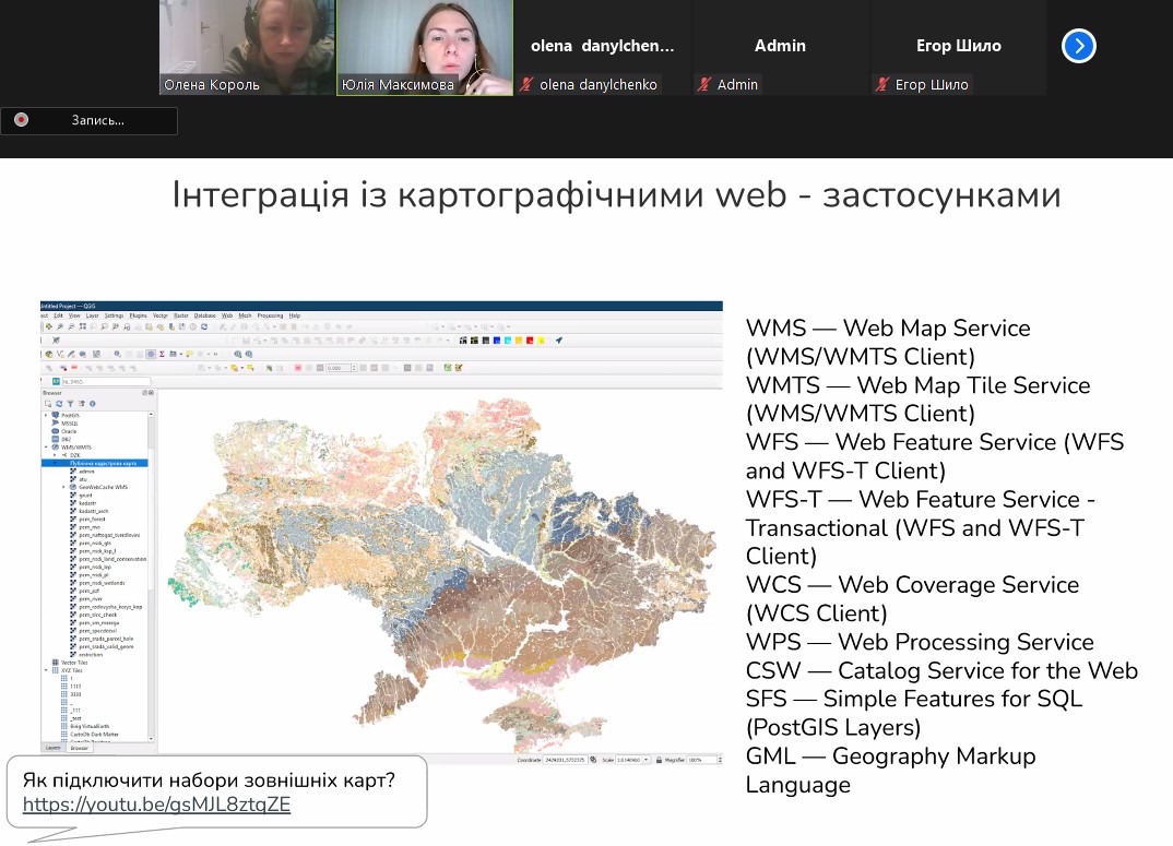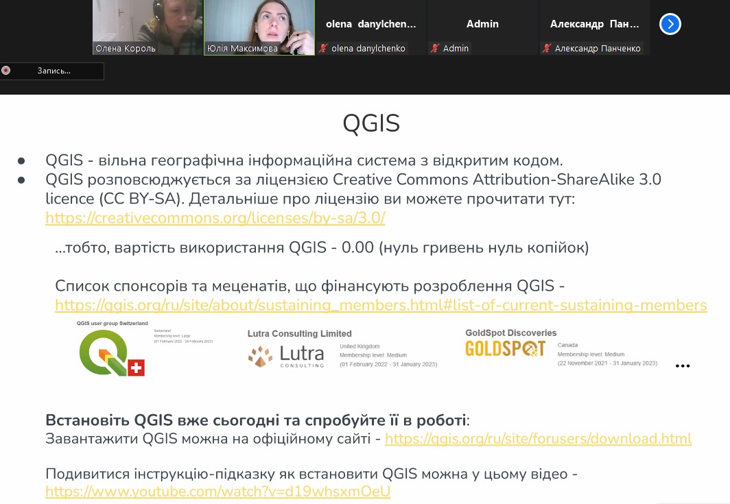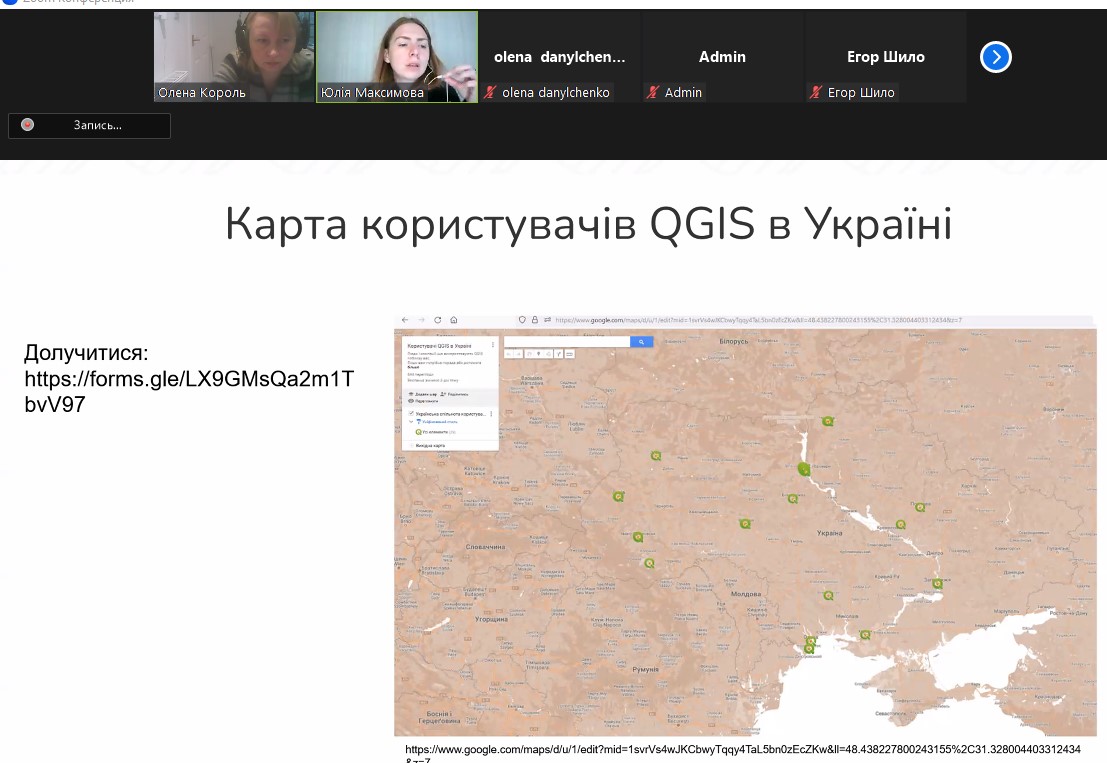 Із доповіддю виступив лектор – кандидат технічних наук, асистент кафедри геоінформатики і фотограмметрії Київського національного університету будівництва та архітектури Максимова Юлія Сергіївна. Під час лекції були розглянуті можливості геоінформаційної програми QGIS. Дякуємо лектору за чудовий матеріал і цікаву доповідь та сподіваємося на подальшу співпрацю.