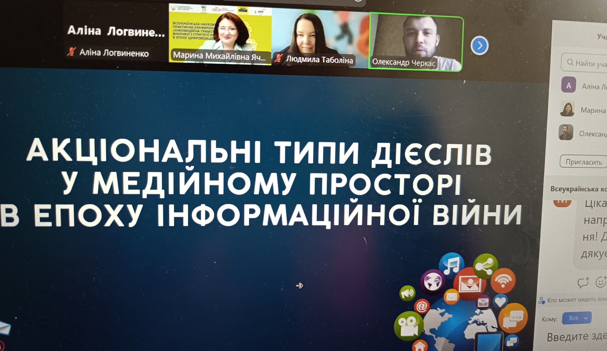 Конференція знаменна тим, що порушені питання важливі як для наукової спільноти, так і для освітян, які виховують майбутнє України. Цьому свідченням були виступи шанованих партнерів та гостей: Олександри Усенко (програма проєкту “Вивчай і розрізняй: інфомедійна грамотність в освіті” (IREX), Тетяни Іванової (Маріупольський державний університет, Академія української преси), Любові Найдьонової (Національна академія педагогічних наук України, Інститут соціальної та політичної психології НАПН України, Українська асоціація медіапсихологів і медіапедагогів), Ольги Кравченко (національний проєкт із медіаграмотності “Фільтр” Міністерства культури та інформаційної політики України), Анни Яцишин (ДНУ “Український інститут науково-технічної експертизи та інформації”; Інститут цифровізації освіти НАПН України), Анни-Вероніки Краснопольської (“Куншт”), Альони Романюк, (КНУ імені Тараса Шевченка, фактчекінговий проєкт “Нота Єнота”).