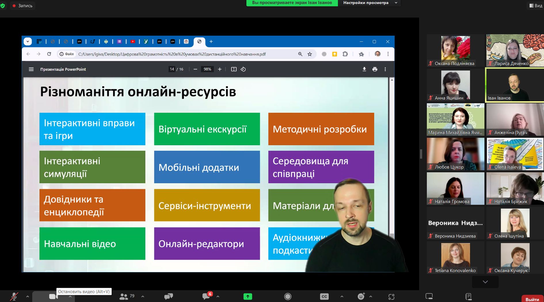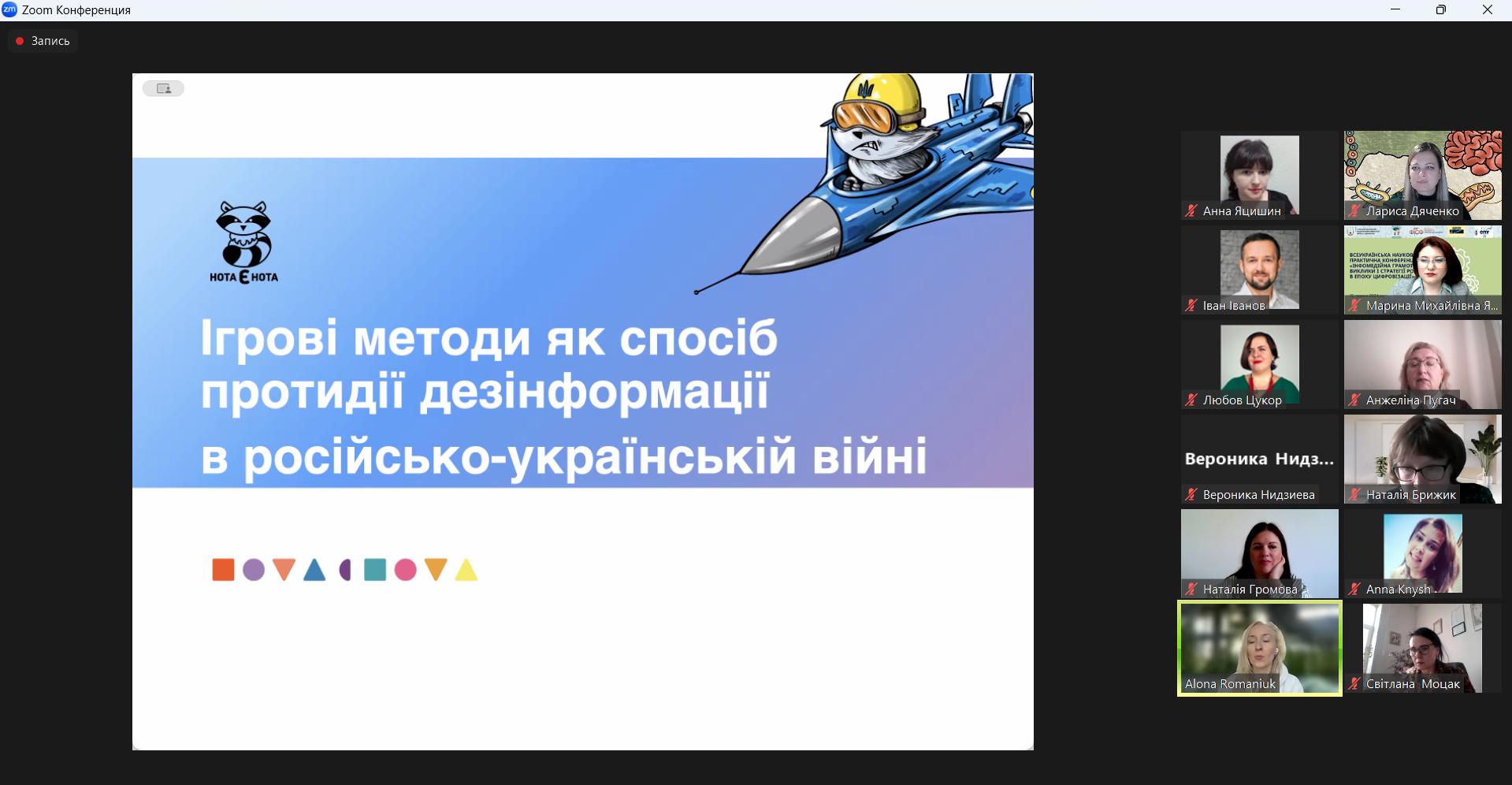 Практичним досвідом упровадження медіаграмотності на освітніх платформах поділилися: Любов Цукор (освітній проєкт “На урок”), Іван Іванов, (Центр нової освіти).