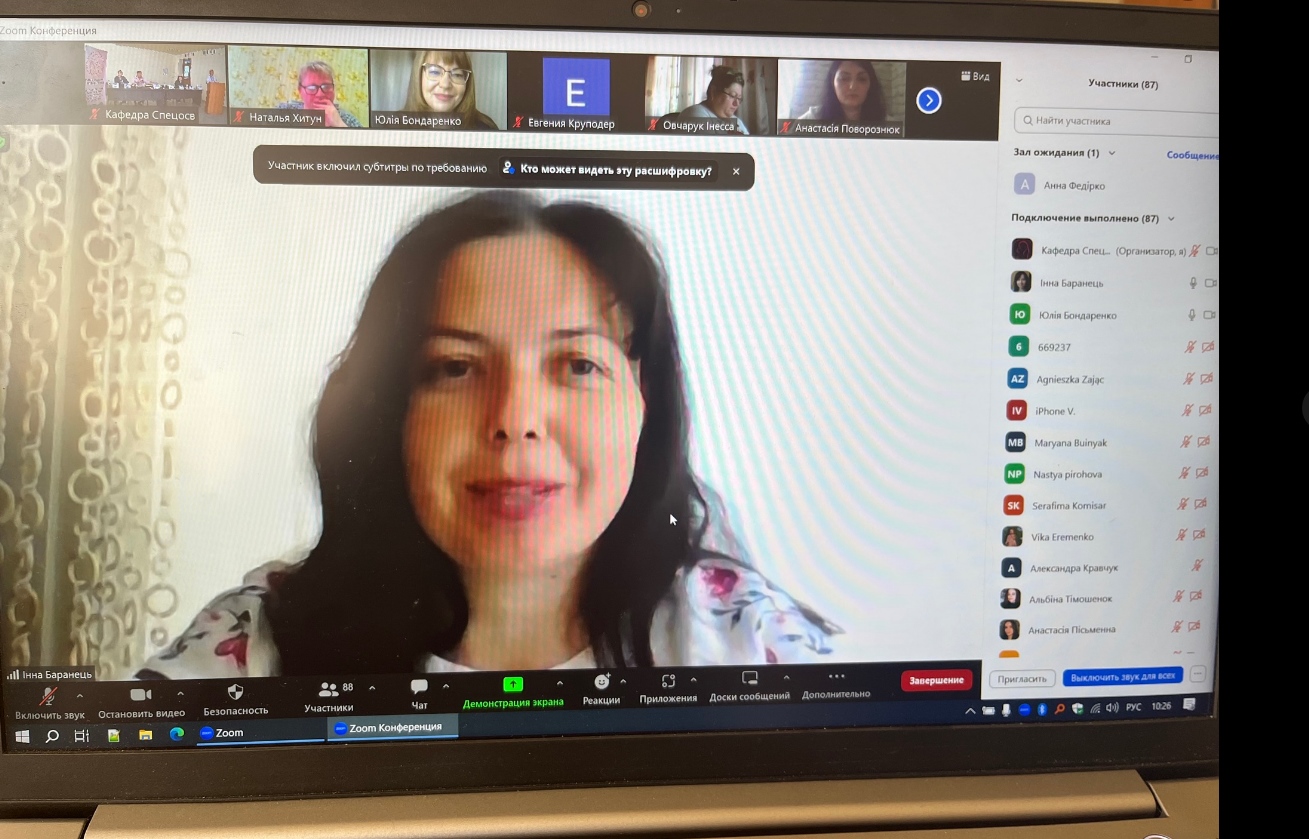 ПЛАТФОРМА 2 – Вебінар: «Створення логопедичних інтерактивних ігор на онлайн платформах» (платформа Zoom) (Віра Товт, здобувачка вищої освіти спеціальності Спеціальна освіта, четвертого року навчання факультету дошкільної та спеціальної освіти Уманського державного педагогічного університету імені Павла Тичини, м. Умань, Україна).