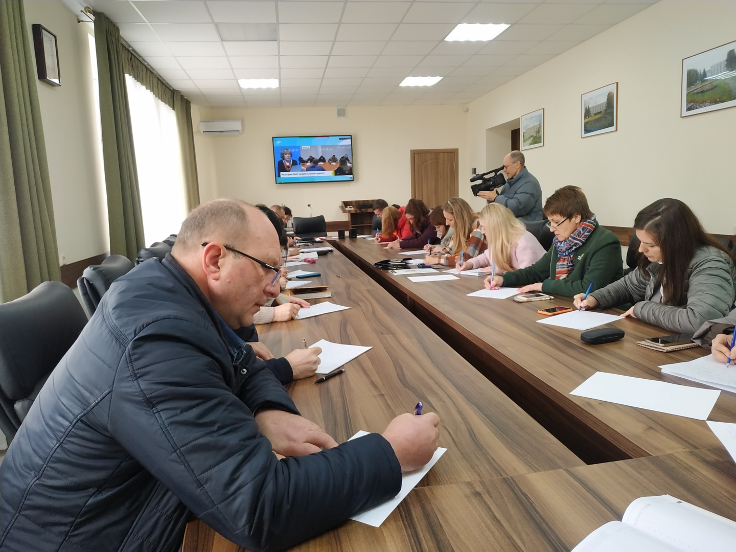 Частина бажаючих, на чолі з ректором та проректорами, зібралася в університеті, ще більше півсотні осіб приєдналися онлайн на платформі ZOOM.