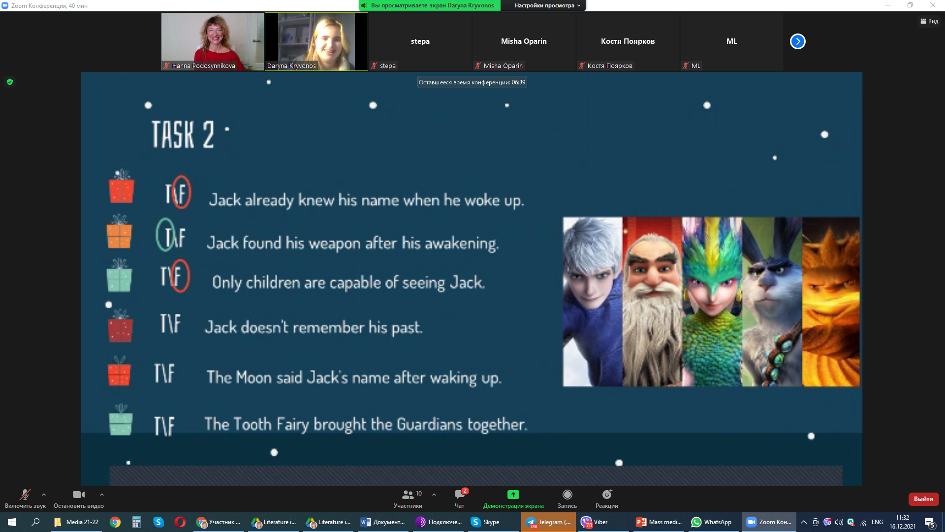 Цього разу методична майстерня гостинно запросила до себе старшокласників КУ Сумська класична гімназія Сумської міської ради. Керівник лабораторії доцент Подосиннікова Г.І. та член лабораторії Кривонос Дарина розповіли учням про університет, факультет, відділення іноземних мов та лабораторію методики і запропонували до перегляду святковий анімаційний фільм «Rise of the Guardians». Цей яскравий, динамічний, повний гумору фільм і ретельно розроблені цікаві завдання допомігли учням 10-го класу удосконалити лінгвосоціокультурну компетентність щодо основних свят англомовних країн, їх символічних постатей і традицій, а також лексичну компетентність за темою «Character and Appearance». Сюжет підштовхує глядачів разом із головним героєм, підлітком Джеком Фростом, замислитися над питаннями пошуку свого місця у житті, дорослішання, цінностями дружби, відповідальності за інших і відданості ідеалам добра.