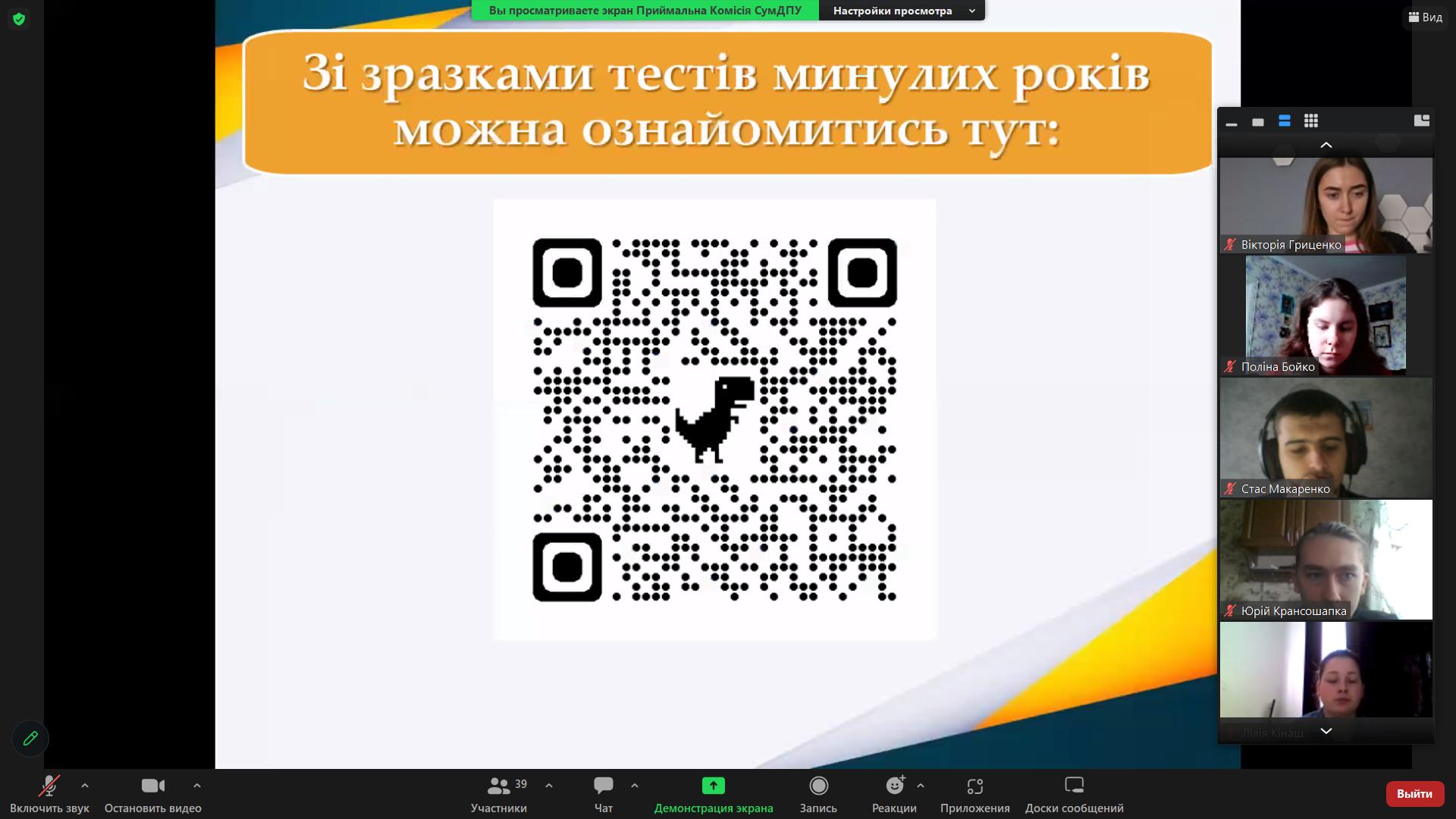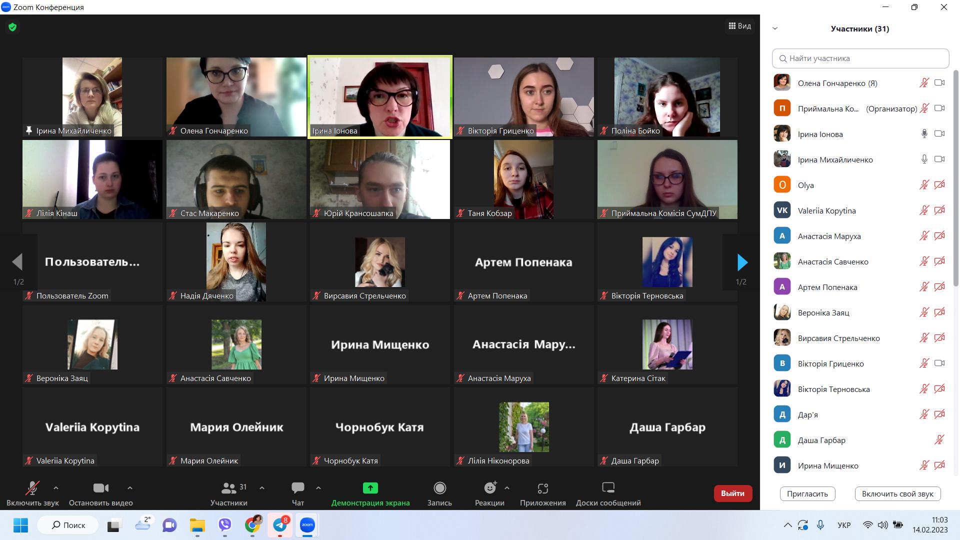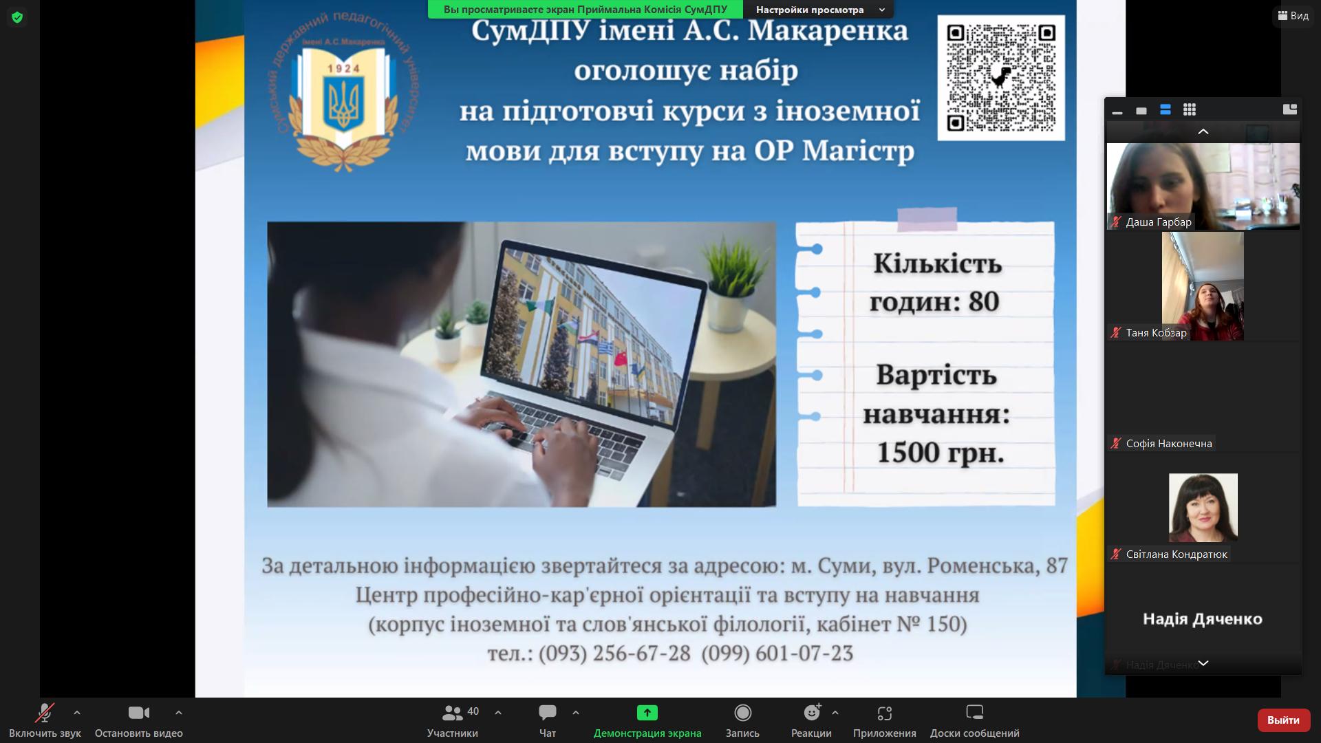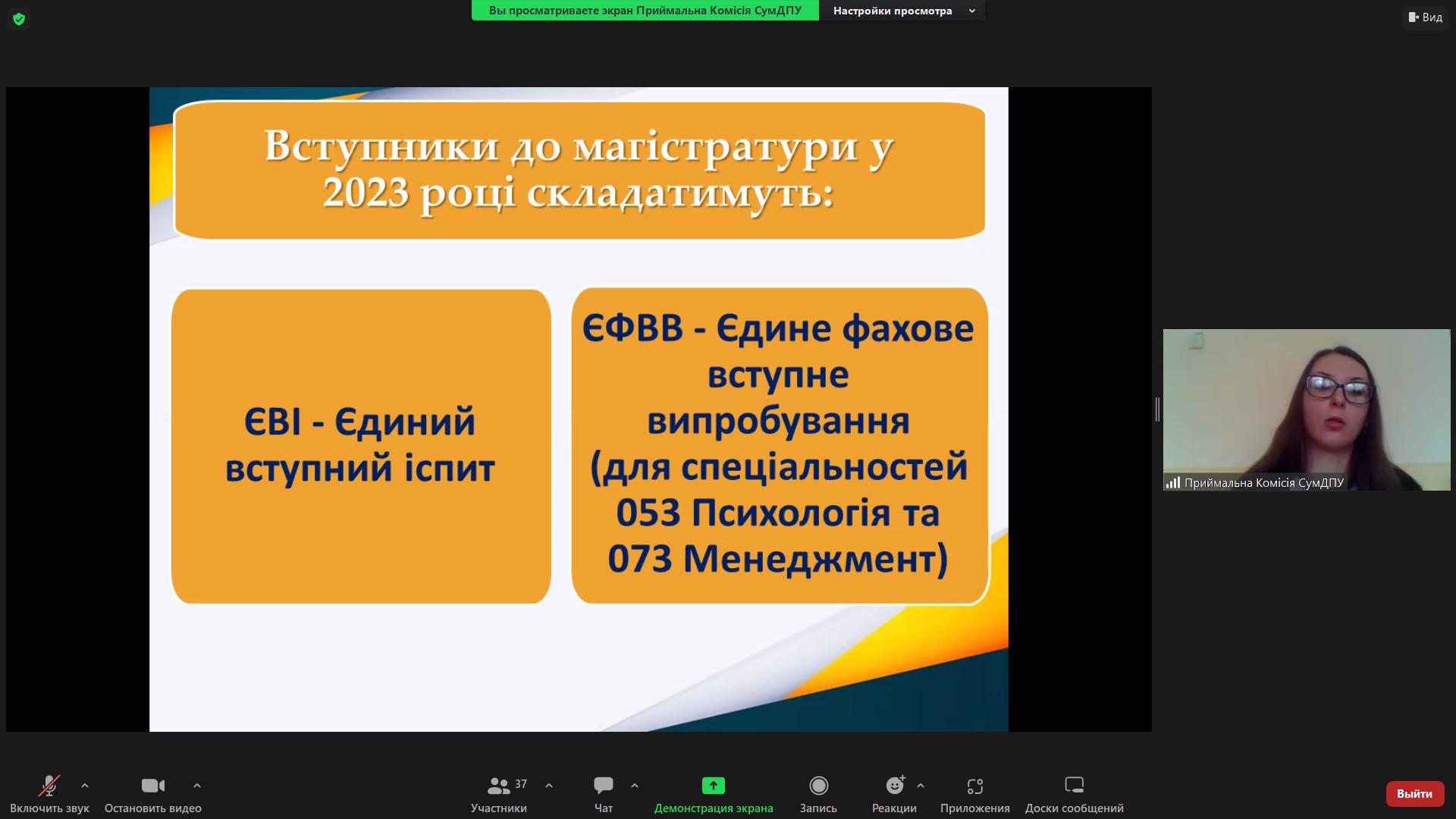 14 лютого 2023 року відбулася онлайн-зустріч студентів випускних курсів ОС «Бакалавр» усіх спеціальностей Навчально-наукового інституту педагогіки і психології з представниками приймальної комісії СумДПУ імені А.С. Макаренка з питання реєстрації на курси іноземної мови для вступу на ОС Магістр (за програмою єдиного вступного іспиту з іноземної мови).