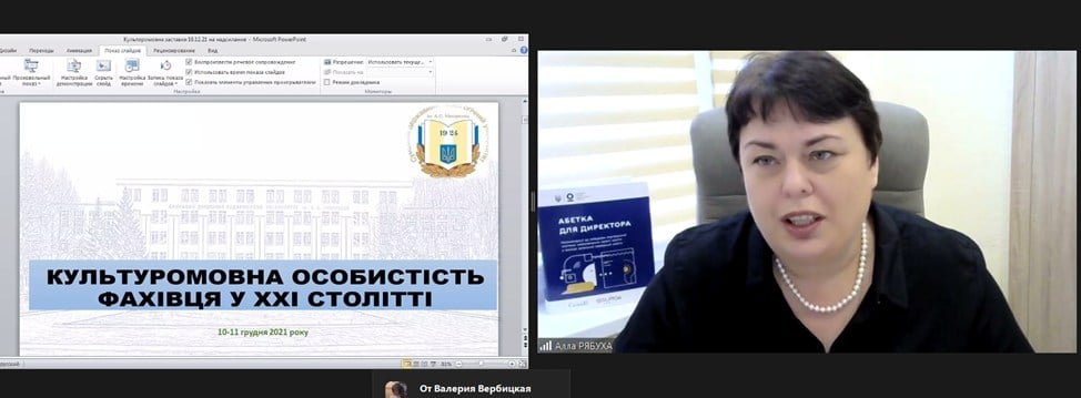 Алла Рябуха Alla Rjabukha, начальник управління державної служби якості освіти в Україні в Сумській області, котра акцентувала на партнерській взаємодії у формуванні культуромовної особистості.