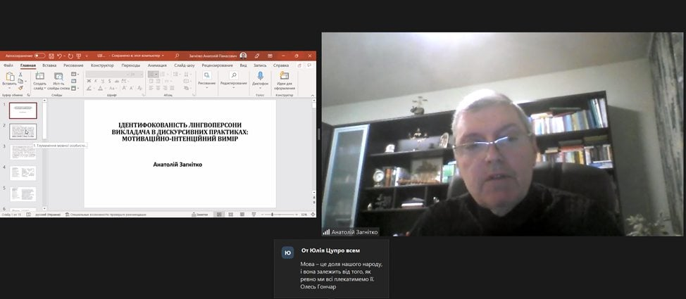 ІДЕНТИФІКОВАНІСТЬ ЛІНГВОПЕРСОНИ ВИКЛАДАЧА В ДИСКУРСИВНИХ ПРАКТИКАХ: МОТИВАЦІЙНО-ІНТЕНЦІЙНИЙ ВИМІР ( Анатолій Загнітко, декан філологічного факультету Донецького національного університету імені Василя Стуса, доктор філологічних наук, професор, академік Академії наук вищої школи України, член-кореспондент НАН України);