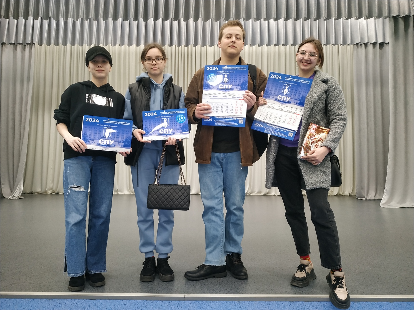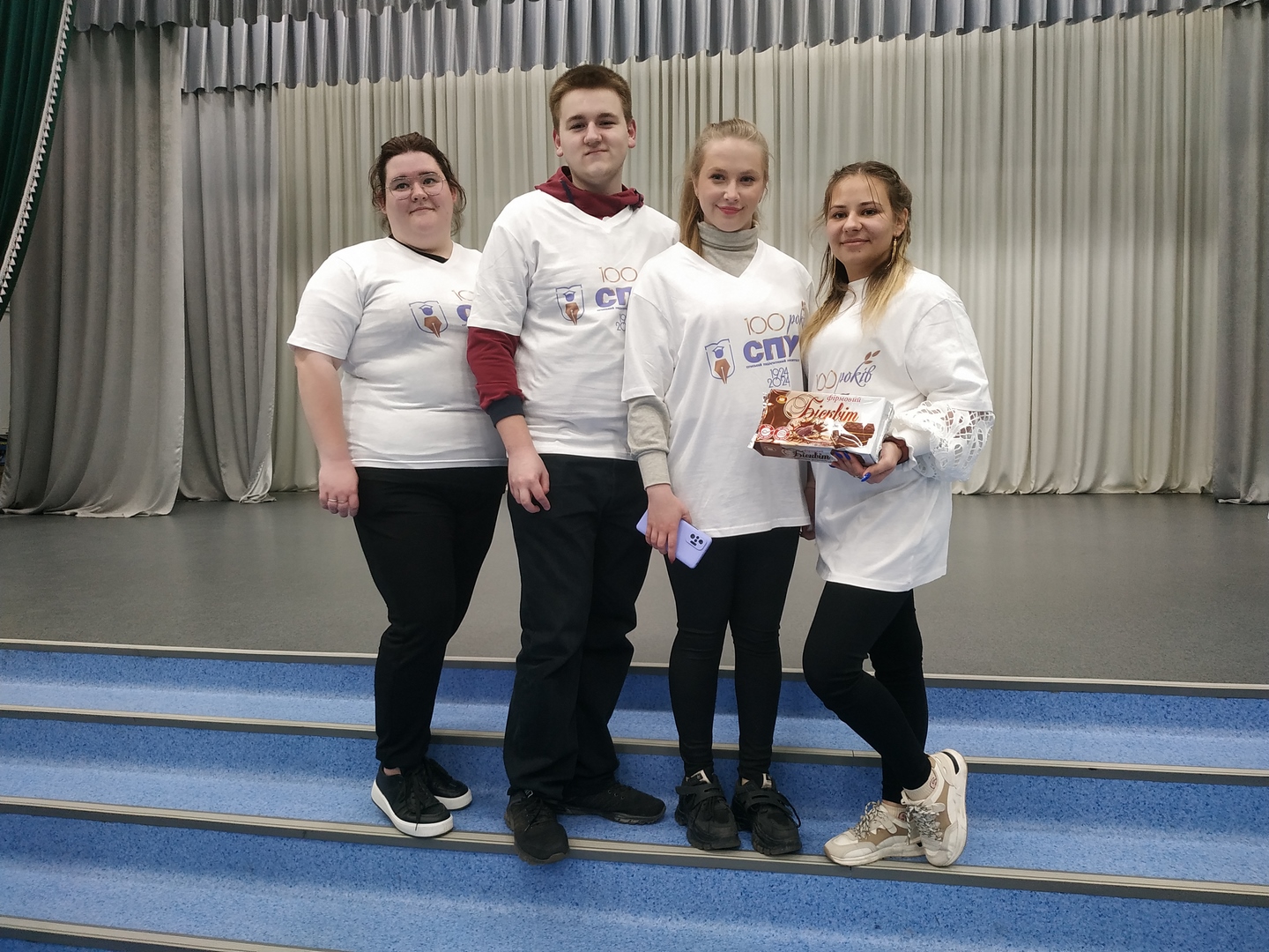Команди-призери отримали з рук в.о. ректора університету Ганни Заікіної брендовані сувеніри з унікальним логотипом, розробленим до 100-річчя СумДПУ, яке наш університет святкує цьогоріч.