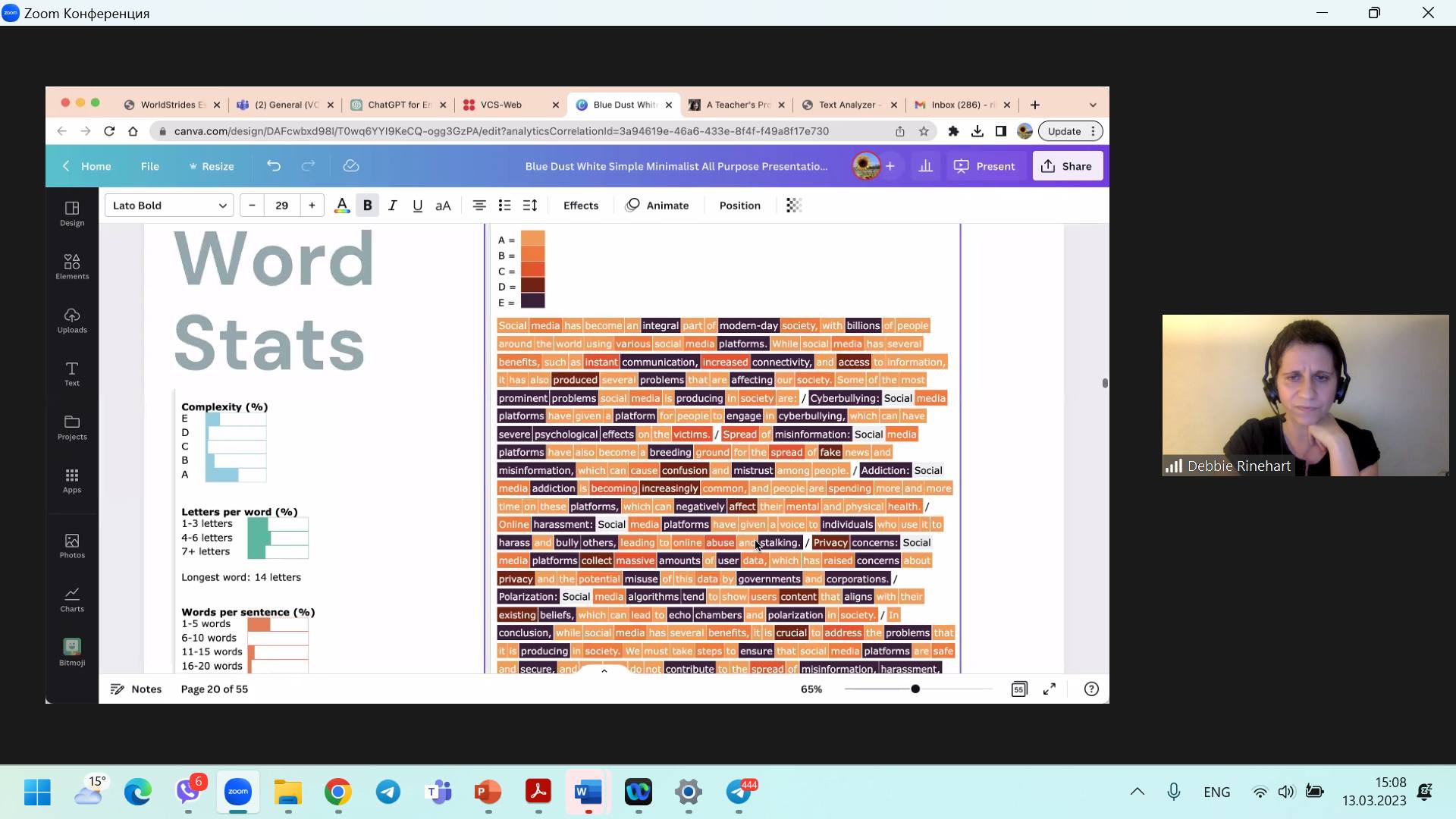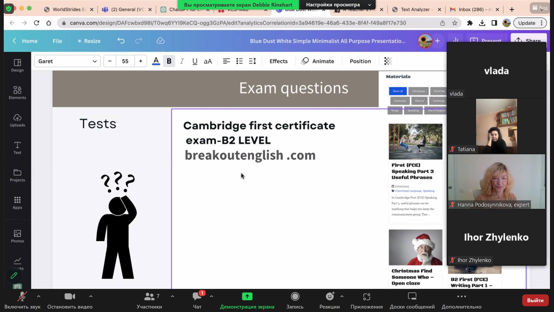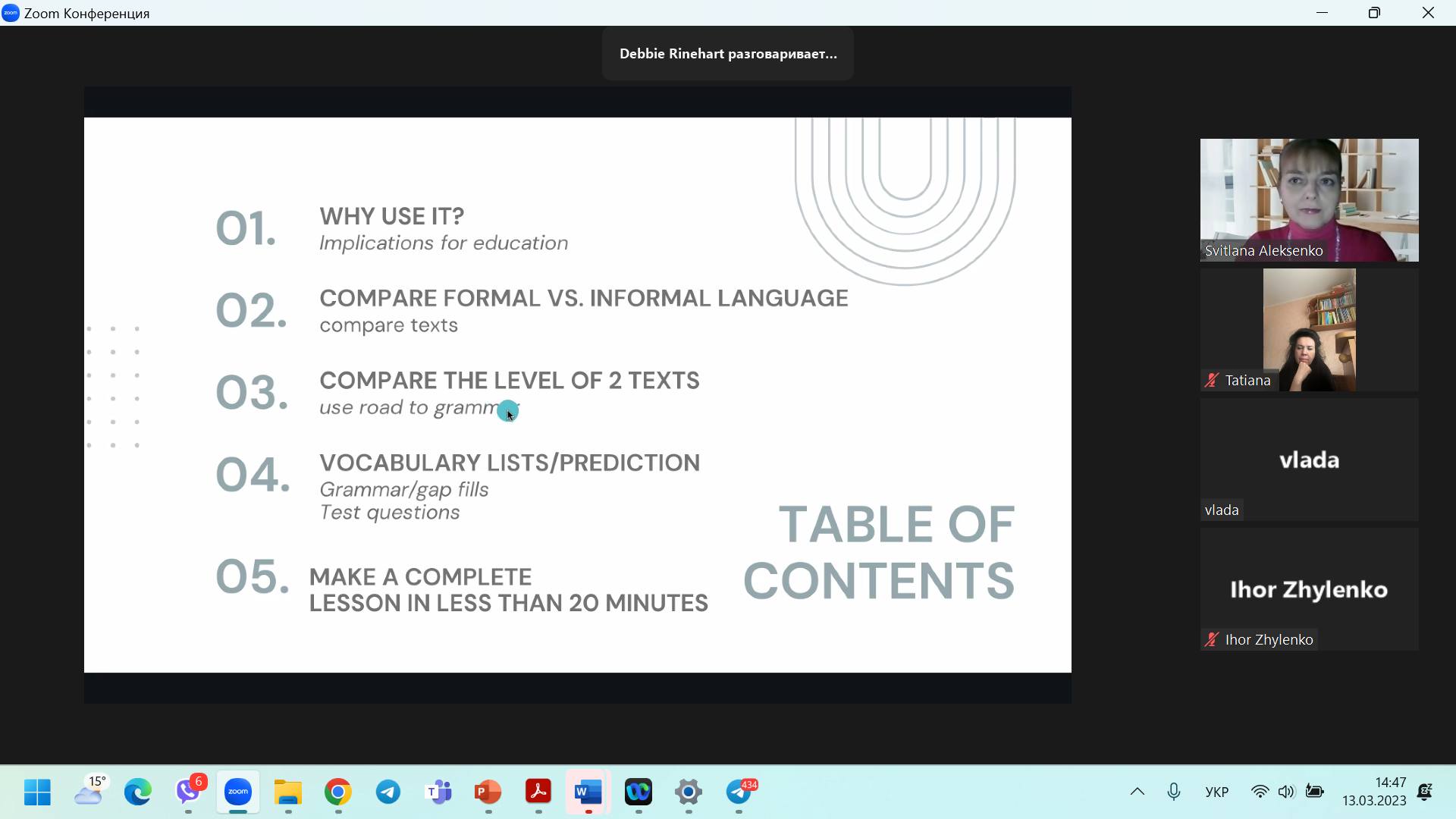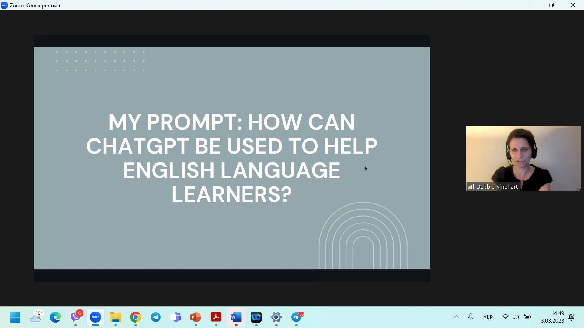 13.03.2023 на кафедрі англійської філології та лінгводидактики факультету іноземної та слов’янської філології СумДПУ імені А.С. Макаренка відбувся черговий методичний вебінар, організований у межах проєкту «Virtual English Language Educator», за участі Деббі Райнхарт, тьютерки Британської Ради, авторки навчального контенту, яка має багаторічний досвід викладання англійської мови як іноземної.