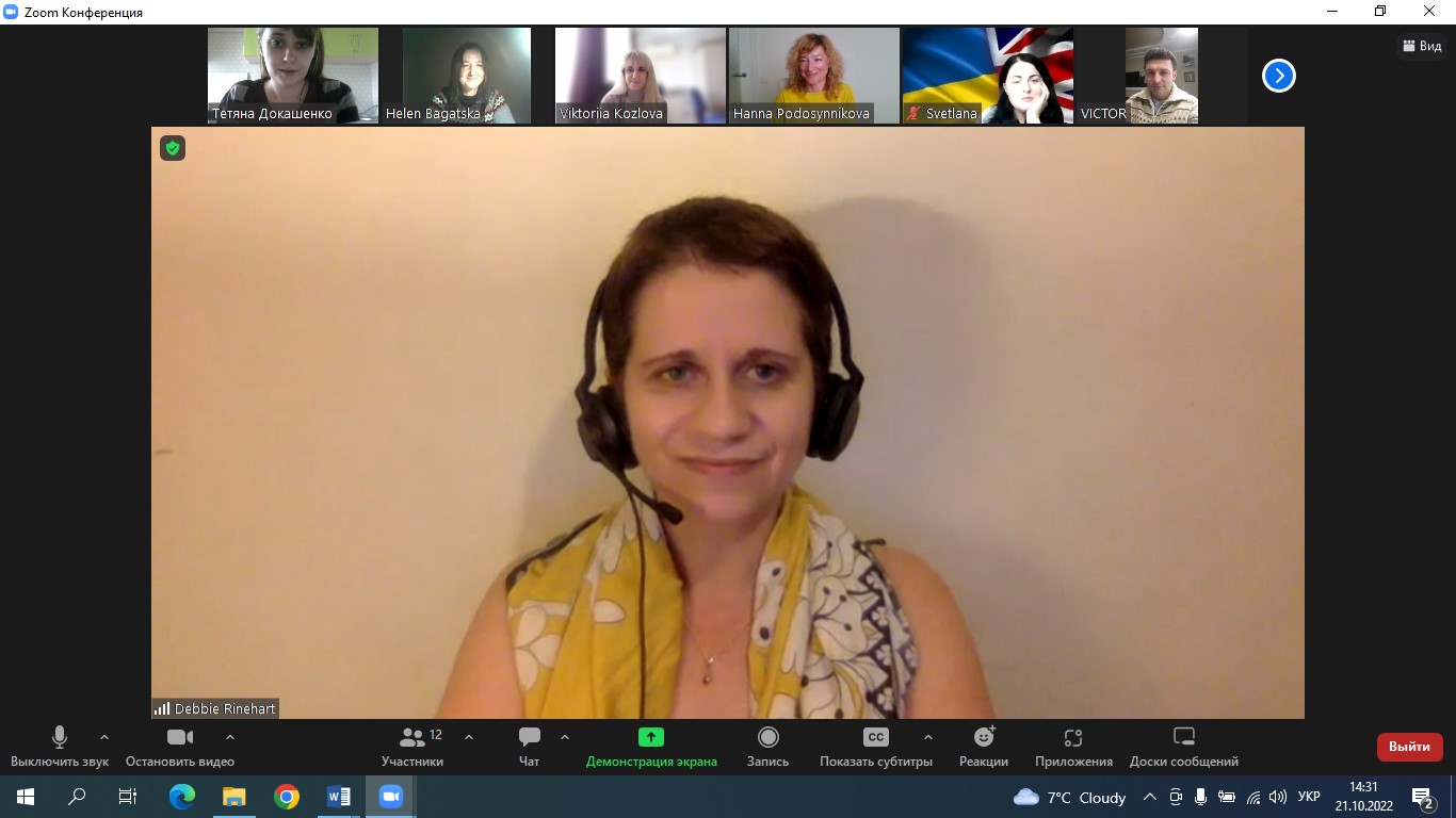 Деббі Райнхарт ознайомила викладачів кафедр англійської філології та лінгводидактики та іноземних мов та магістрантів першого та другого року навчання із різноманітними цифровими інструментами, які можуть бути використані під час онлайн занять.