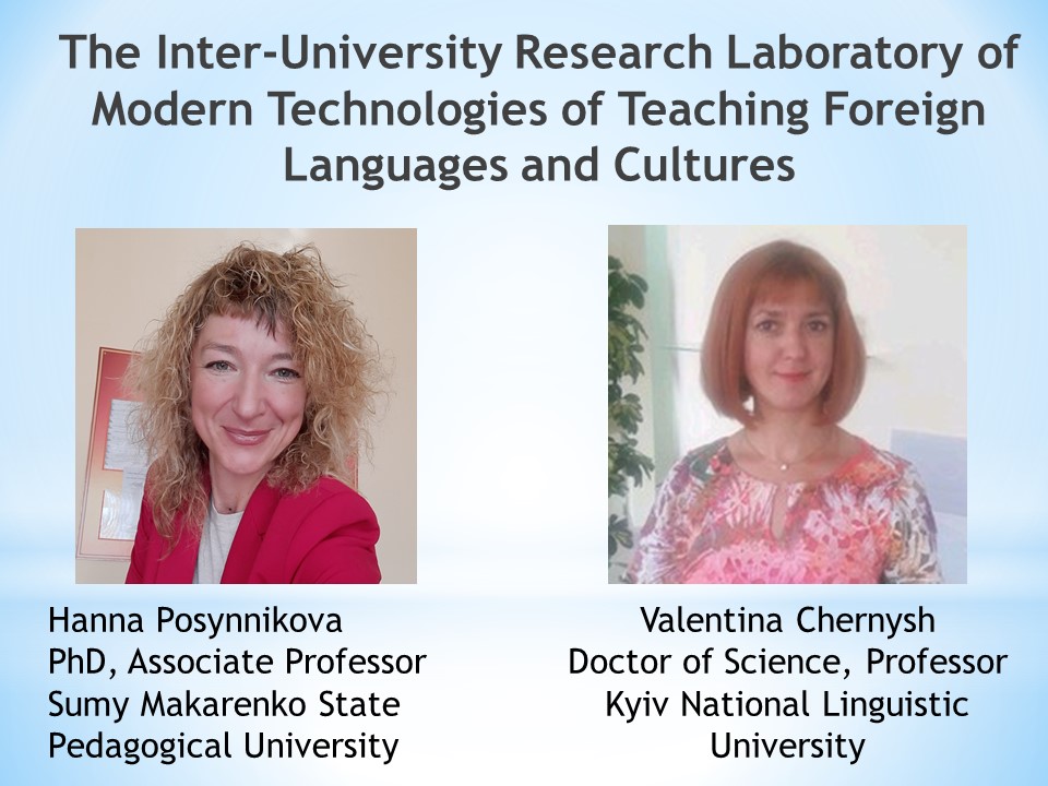 Міжуніверситетська науково-дослідна лабораторія сучасних технологій навчання іноземних мов і культур об’єднує широке коло дослідників із різних університетів України, які працюють за науковою спеціальністю 13.00.02 – теорія та методика навчання: германські мови.