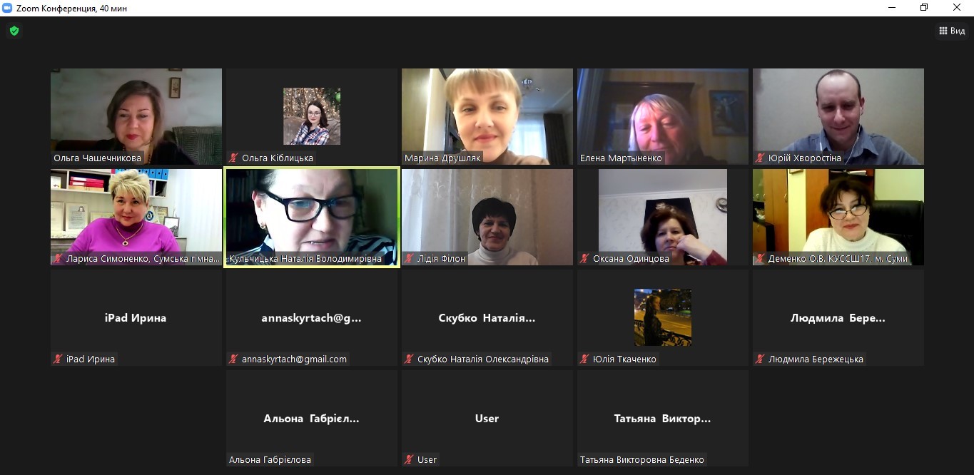 В обговоренні взяли участь доктор педагогічних наук, професор О. С. Чашечникова, доктор педагогічних наук, доцент М. Г. Друшляк, кандидати фізико-математичних наук, доценти О. В. Мартиненко, О. О. Одінцова, Ю. В. Хворостіна, начальник Центру забезпечення якості вищої освіти Сум ДПУ імені А. С. Макаренка , кандидат педагогічних наук М. М. Ячменик.