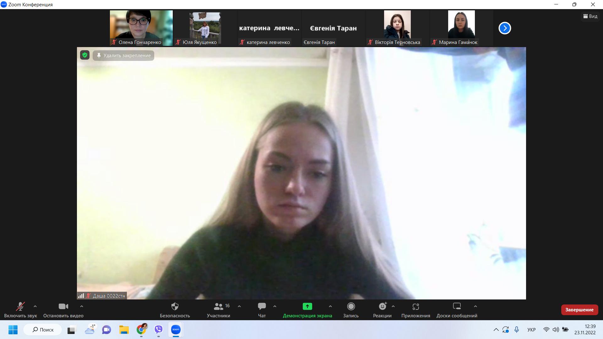 До обговорення нагальних питань життєдіяльності інституту в умовах blackout долучилася і представниця студентського самоврядування ННІПП, староста 0041 групи Таран Євгенія. Вона закликала старост активніше долучати студентство до виховних, культурних і волонтерських ініціатив університету та інституту.