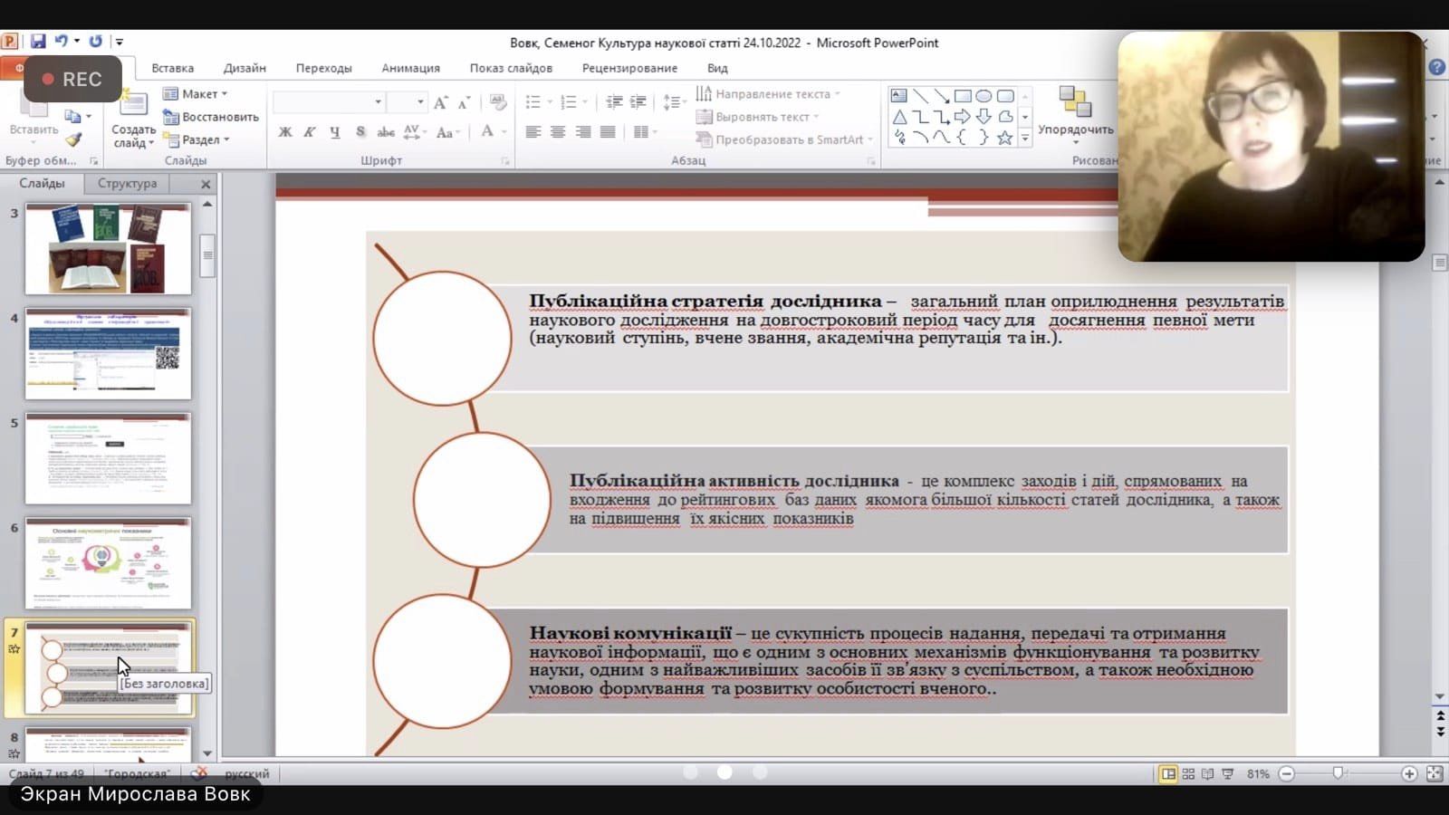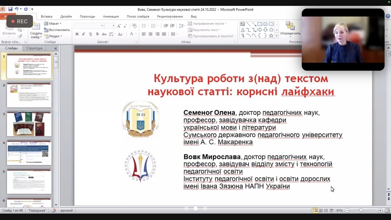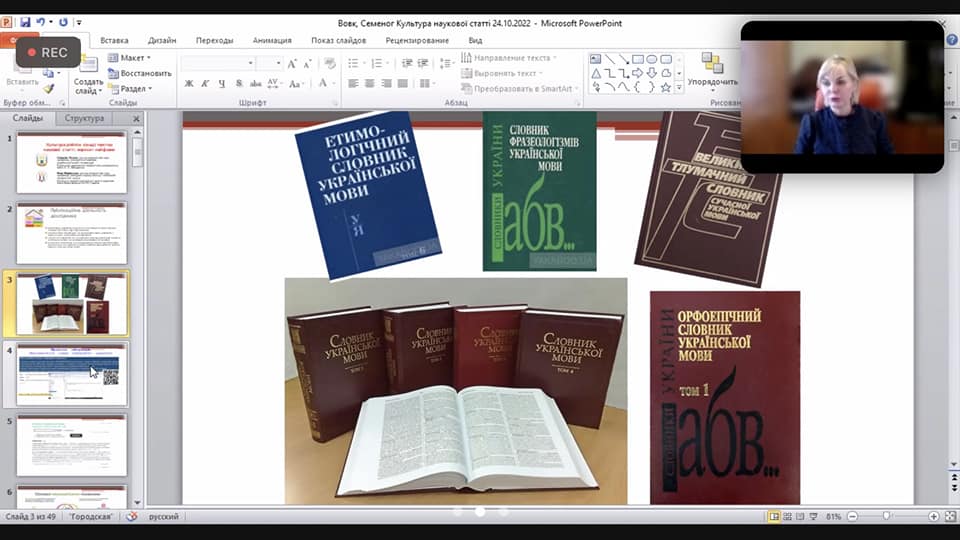 24 жовтня 2022 р. відбулося бінарне заняття студентів, аспірантів університету і наукової установи з проблеми академічної доброчесності дослідника з урахуванням сучасних вимог до якості публікацій, здійснення дослідницької діяльності на засадах етичних принципів вченого, наставництва, розвитку цінностей наукової діяльності.