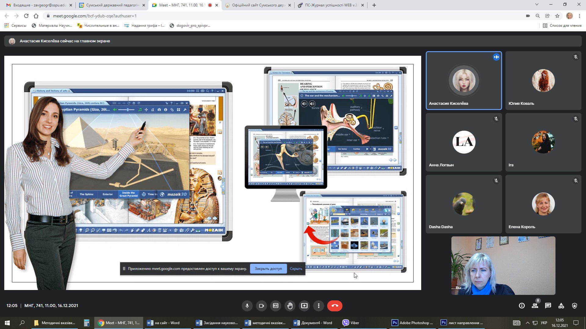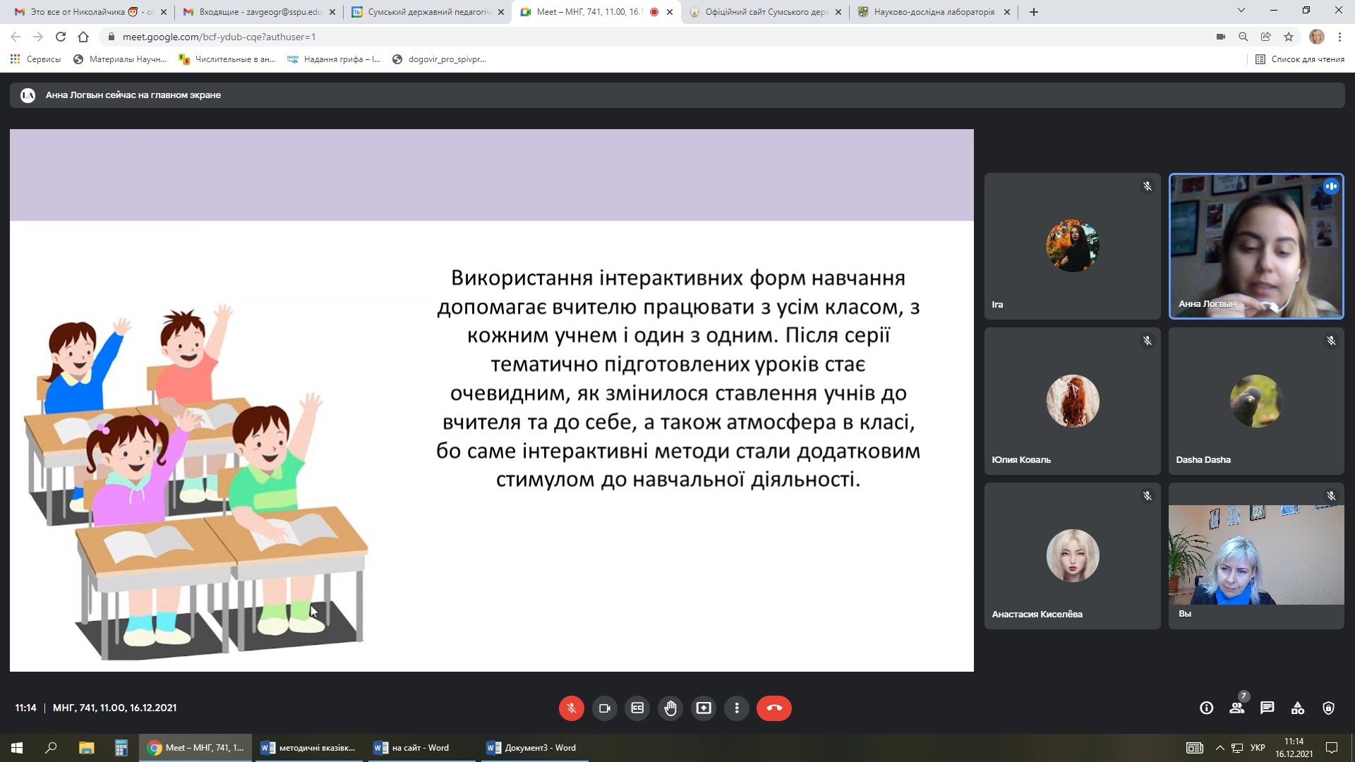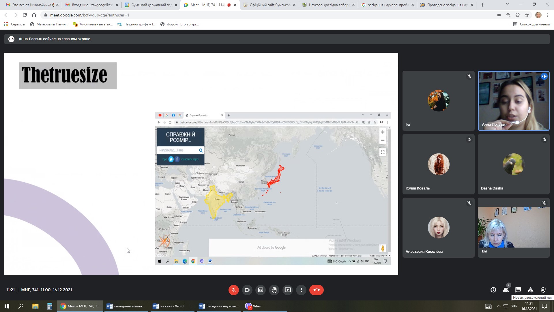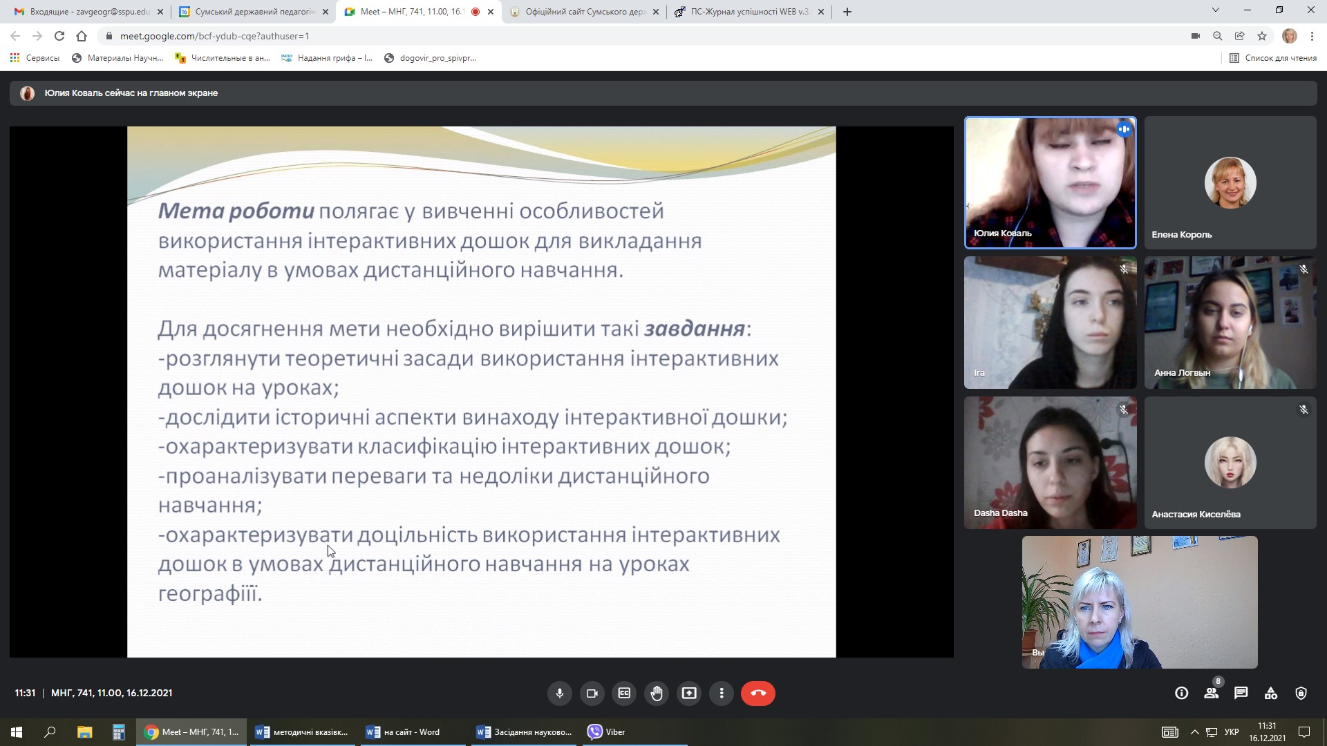16 грудня 2021 року на кафедрі загальної та регіональної географії у рамках діяльності Науково-дослідної лабораторії регіональних природничо- та суспільно-географічних досліджень та ресурсного центру розвитку природничої освіти Сумського державного педагогічного університету імені А.С. Макаренка відбулося засідання наукової проблемної групи, на якому студенти 741 групи спеціальності 014 Середня освіта (Географія) презентували свої науково-дослідні доробки.