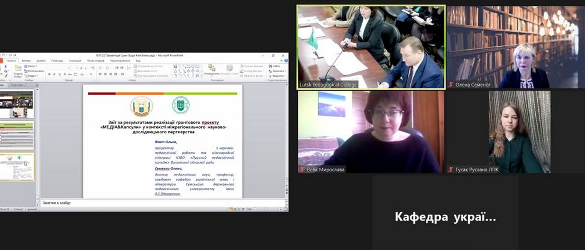 Доповідали Ольга Фаст, проректорка з науково-педагогічної роботи та міжнародної співпраці Кафедра філології КЗВО "Луцький педагогічний коледж" Волинської облради, та О.Семеног, завідувачка Кафедра української мови і літератури СумДПУ імені А.С.Макаренка.