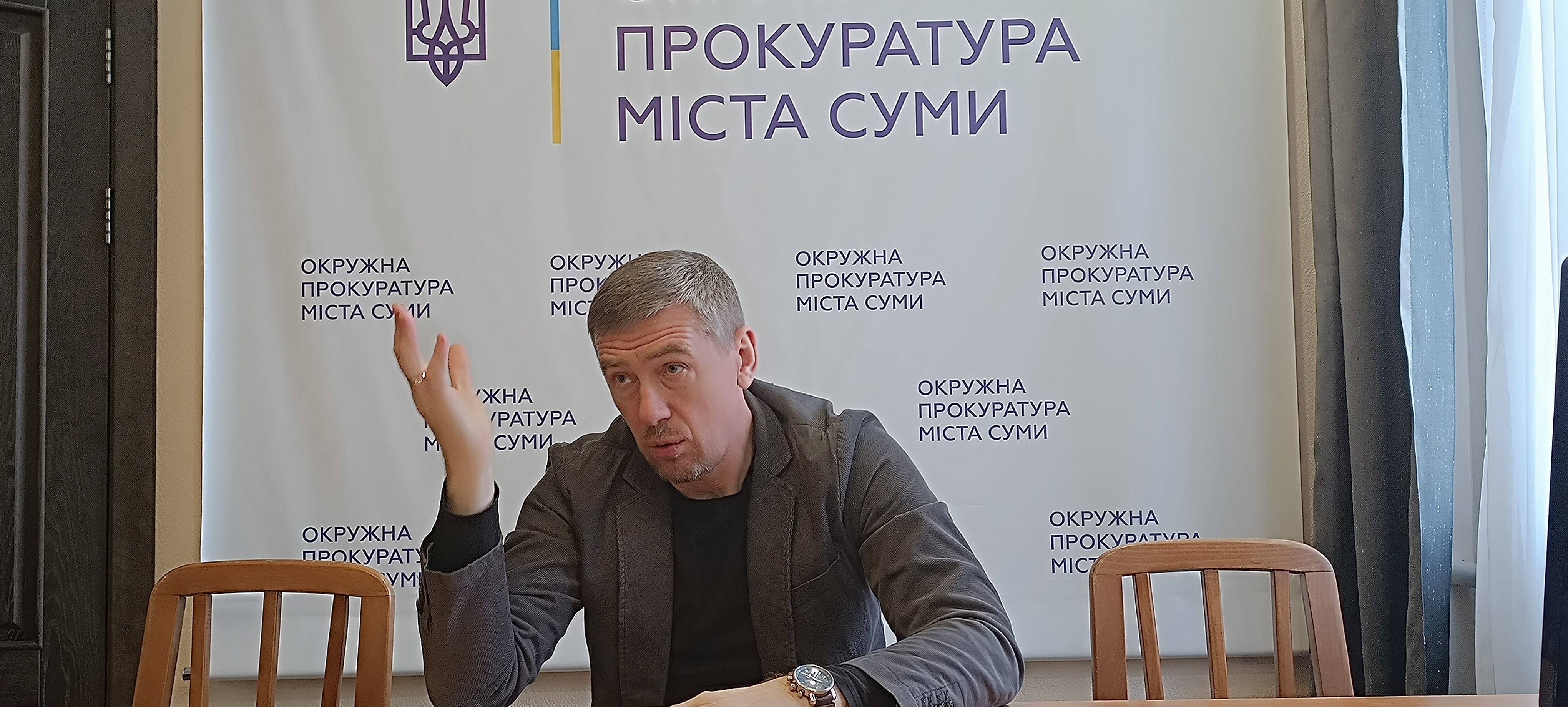 Під час зустрічі з заступником керівника Володимиром КУЗЧЕНКОМ студенти дізналися про функції прокуратури та її структуру, про історичний шлях розвитку інституту прокуратури на Сумщині.