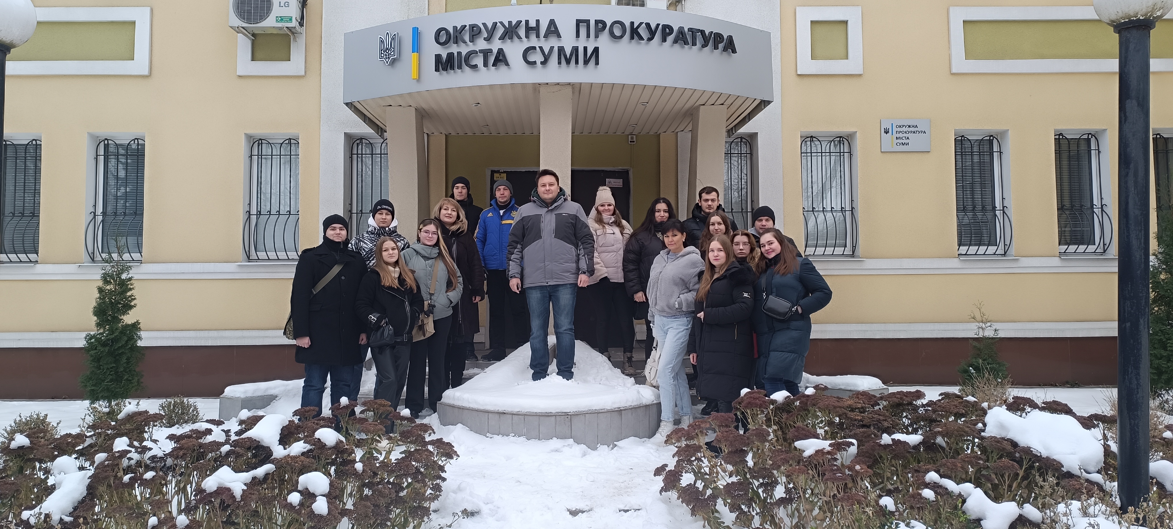 У межах тижня права 08 грудня 2023 року здобувачі першого (бакалаврського) рівня вищої освіти за спеціальністю Право та другого (магістерського) рівня вищої освіти за спеціальністю Публічне управління та адміністрування разом із викладачами кафедри права та методики викладання правознавства Оленою ІВАНІЙ та Оленою БЄЛЯЄВОЮ з навчальним візитом відвідали окружну прокуратуру м. Суми.