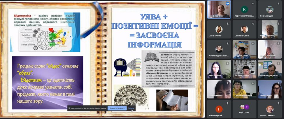 Учасники заходу поділились власними напрацюваннями з питань використання інноваційних технологій навчання, формування предметних компетентностей, дидактичних можливостей соціальних сервісів і мобільних додатків, інтерактивних плакатів, технології використання віртуальної дошки Padlet та інших застосунків.