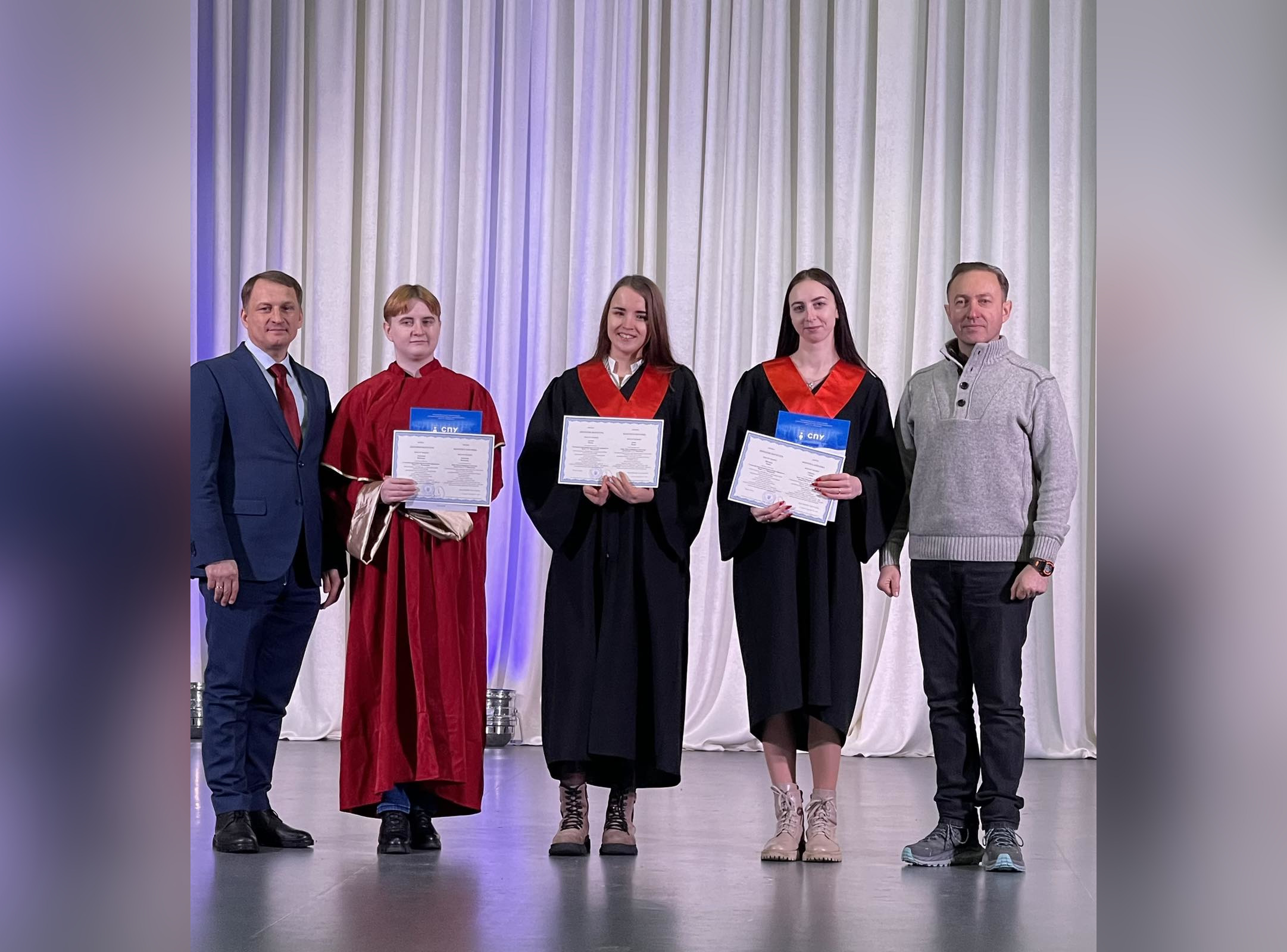 18 січня 2024 року на факультеті іноземної та слов’янської філології Сумського державного педагогічного університету імені А.С. Макаренка відбулась урочиста церемонія вручення дипломів магістра за спеціальностями 014 Середня освіта (Мова і література (англійська), Українська мова і література. Англійська мова) та 035 Філологія (Германські мови та літератури (переклад включно) перша – англійська).