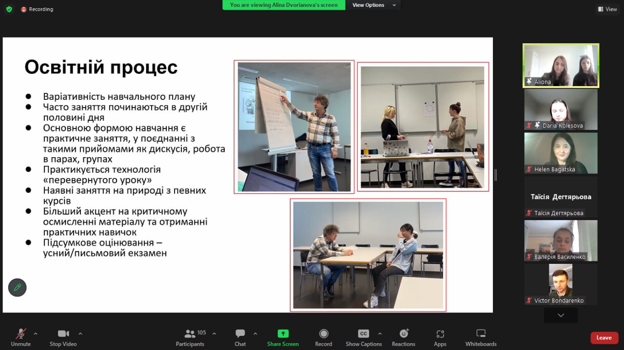 Презентація настільки захопила всіх учасників, що спричинила хвилю питань і переросла у жваву дискусію щодо можливостей імплементації представленого європейського освітнього досвіду у нашій alma mater.