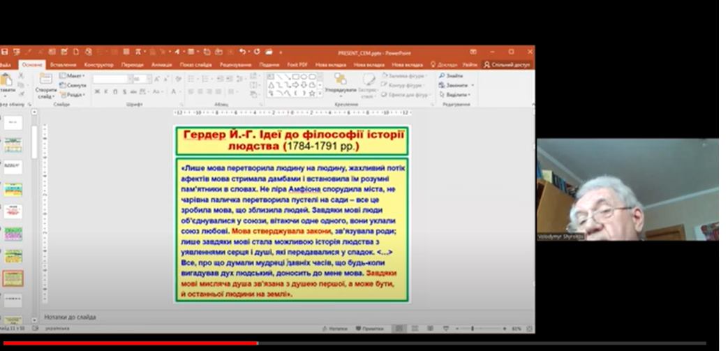 Культуромовна особистість суб'єктів освітнього процесу в об'єктиві міжнародного дослідження якості освіти PISA-2022 (Олена СЕМЕНОГ, доктор педагогічних наук, професор, СУМДПУ); Вивчення літератури у вищій школі крізь призму міжкультурних контактів: із зарубіжного викладацького досвіду (Людмила Ромащенко ,доктор філологічних наук, професор, старший науковий співробітник Міжнародної школи україністики НАН України); Андрій Кушніренко – диригент, композитор, фольклорист: лінгвоперсонологійний вимір (Іван ДЕРДА, народний артист України, професор, професор кафедри музики факультету педагогіки, психології та соціальної роботи Чернівецького національного університету імені Юрія Федьковича); Лінгвоперсонологічний вимір вебінарів «ЦВІТ УКРАЇНСЬКОЇ ПЕДАГОГІКИ- СУЧАСНЕ І МИНУЛЕ» (Наталія Філіпчук , доктор педагогічних наук, старший науковий співробітник, провідний науковий співробітник відділу змісту і технологій педагогічної освіти Інститут педагогічної освіти і освіти дорослих НАПН України); Освітній проєкт «УКРАЇНСЬКА МОВА. ЛЕГКО. ДОСТУПНО. ПРОСТО» (Ольга Ходацька ,доктор філософії, вчителька української мови і літератури гімназії-інтернату №13 м. Київ, заступниця голови правління Київської "Просвіти");