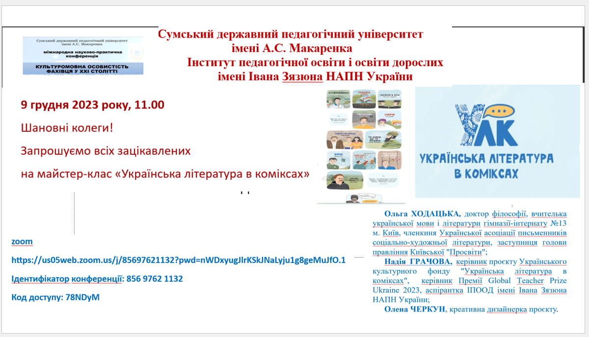 8-9 грудня 2023 року на базі Сумського державного педагогічного університету імені А.С. Макаренка. відбулася міжнародна науково-практична конференцяї «Культуромовна особистість фахівця у ХХІ столітті».