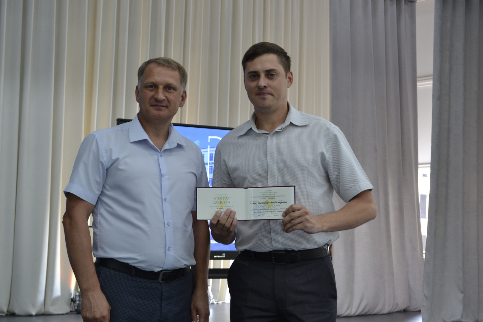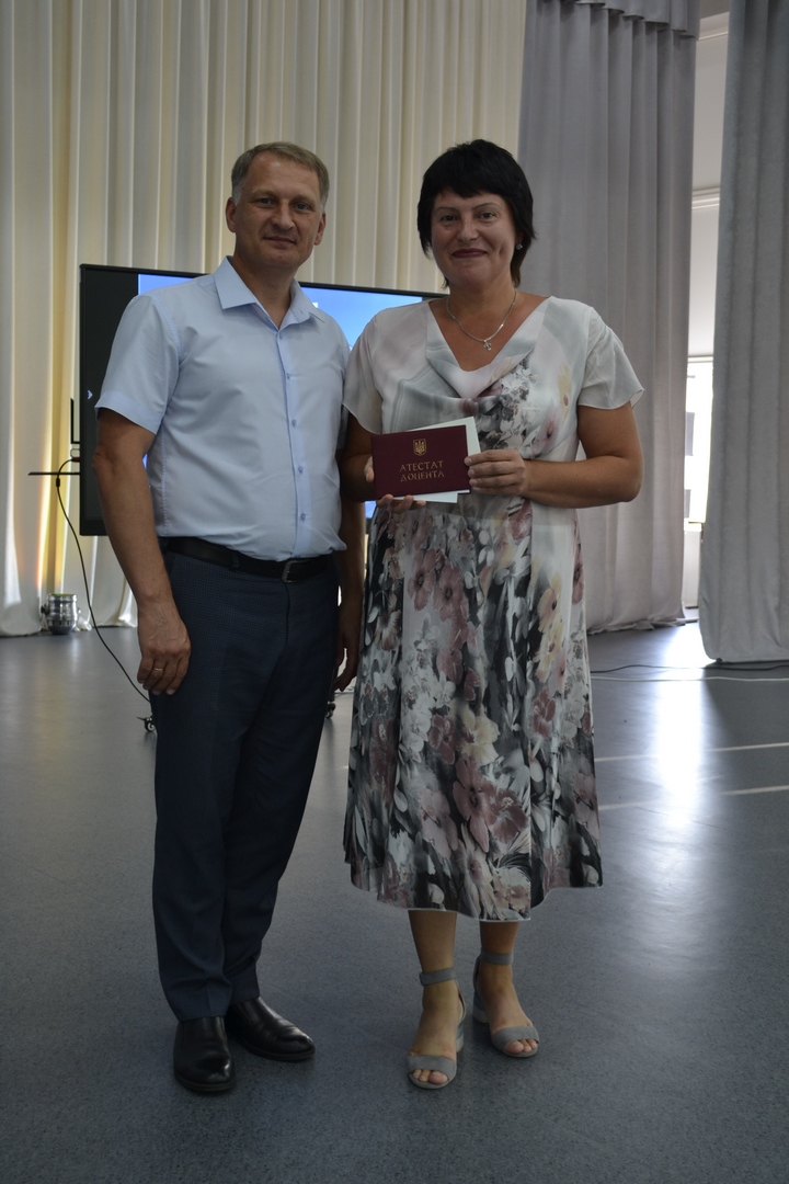 Атестат доцента отримали Олександр ЖУКОВ по кафедрі всесвітньої історії, міжнародних відносин та методики навчання історичних дисциплін, Олена КОРОЛЬ по кафедрі загальної та регіональної географії, Людмила МАКСИМЕНКО по кафедрі теорії та методиці спорту, Тамара ХАРЧЕНКО по кафедрі логопедії та Роман ШЕСТОПАЛОВ по кафедрі права та методики викладання правознавства.
