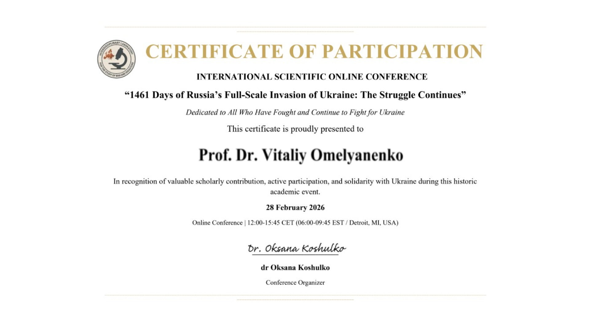 28 лютого 2026 року відбулася міжнародна наукова конференція «1461 Days of Russia’s Full-Scale Invasion of Ukraine: The Struggle Continues», присвячена всім, хто боровся і продовжує боротися за Україну.