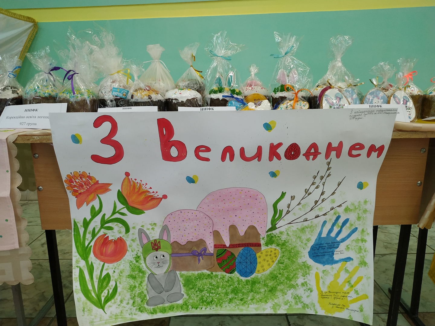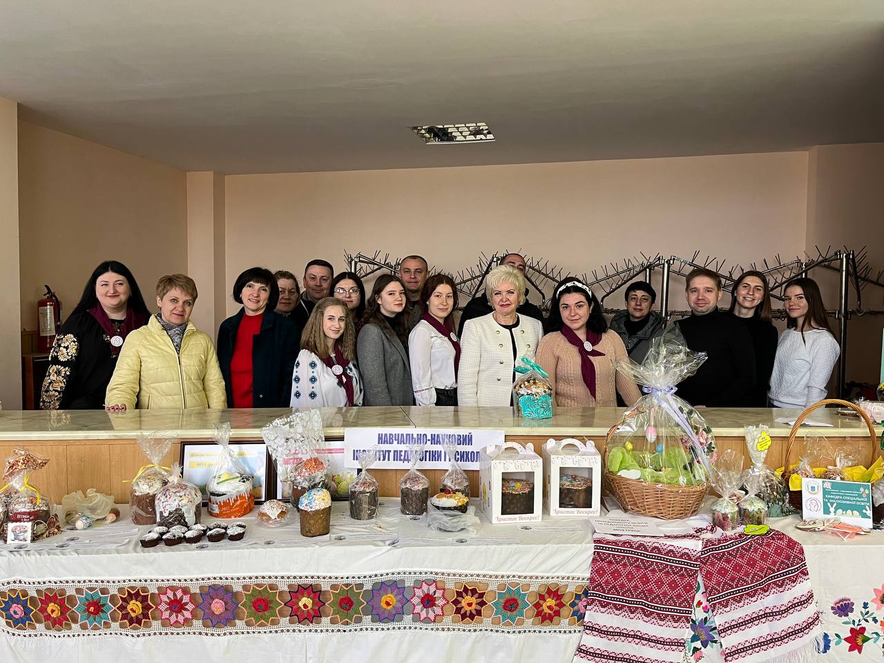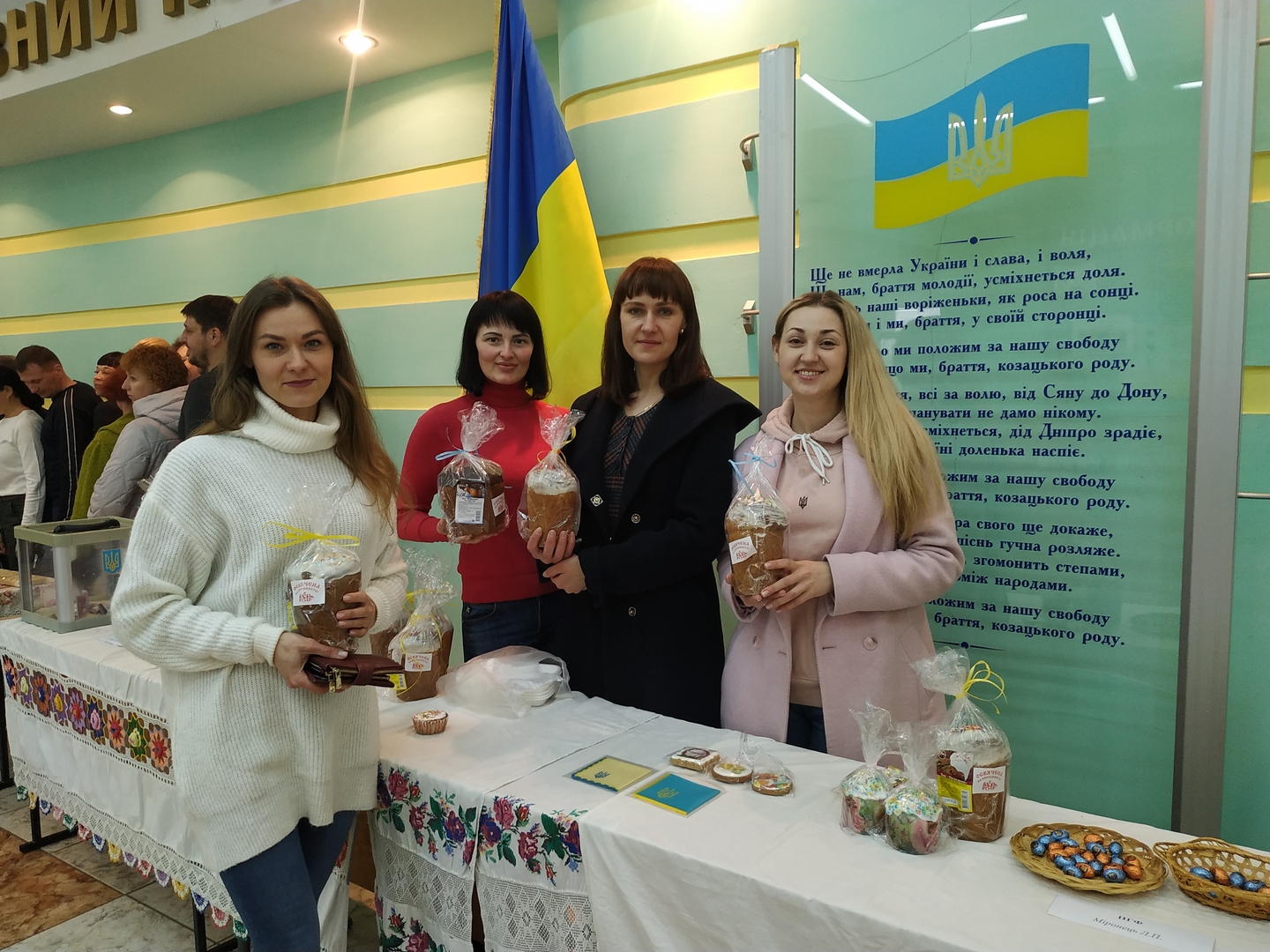 В холі Центрального корпусу всі бажаючі могли представити свої великодні вироби: паски, писанки, пряники та інші святкові смаколики. В ході виставки кожен міг придбати вподобаний виріб за будь-яку суму коштів.
